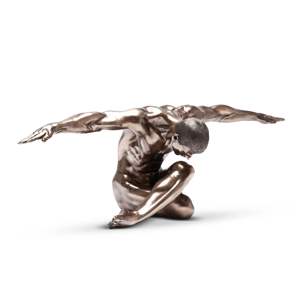 Crafted from durable metal with a polished copper finish, this figurine stands out with its unique design featuring a nude man in a bowing posture. The dimensions are L 137 cm, D 47 cm, H 40 cm, making it large enough to be a centerpiece in your decor.