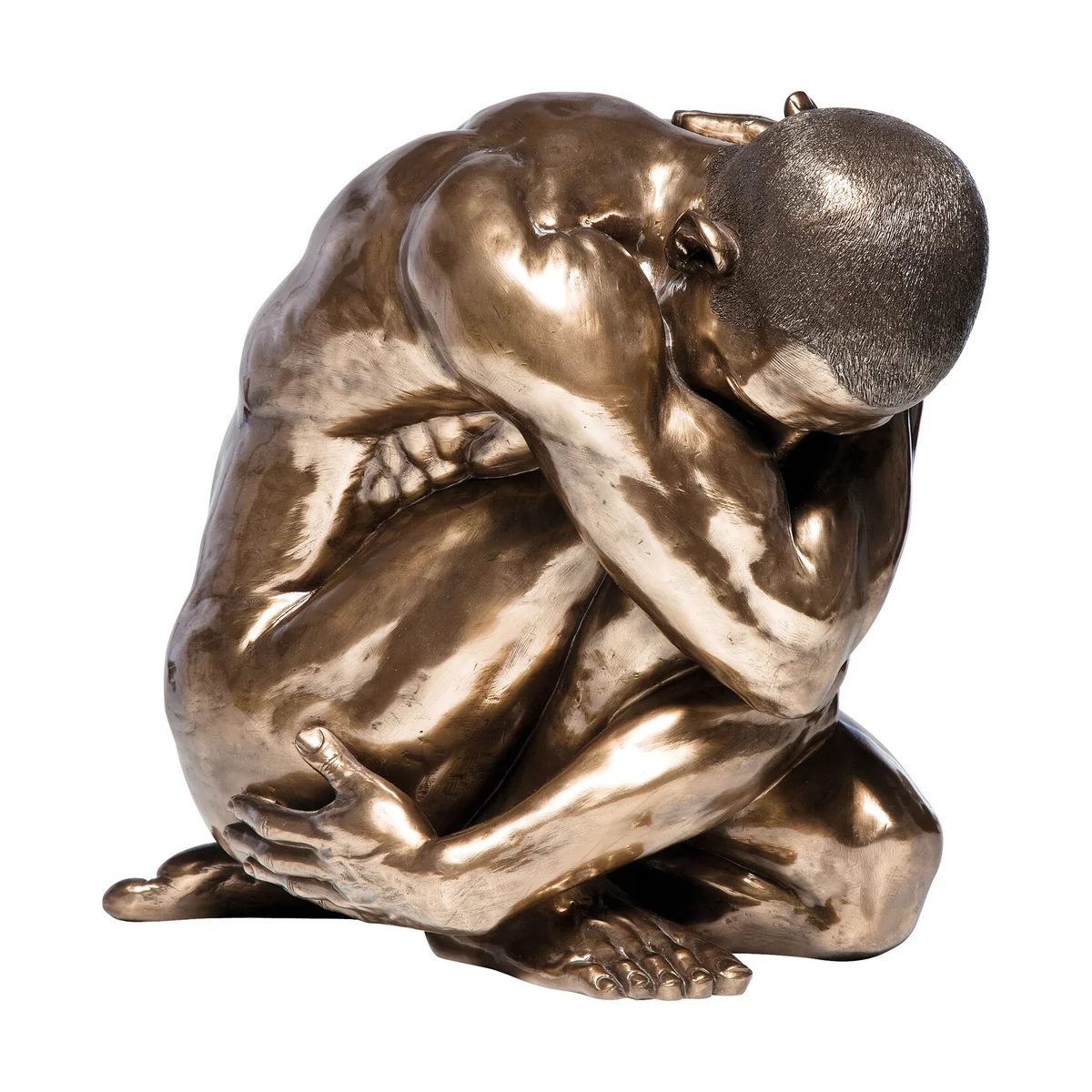 This figurine is meticulously crafted from durable polyresin and coated in a stunning bronze finish. It measures 34.5cm in length, 45cm in depth, and 53.5cm in height, making it an impressive centerpiece in any room. The design features a nude man in a powerful and emotive pose, symbolizing strength, beauty, and resilience.
