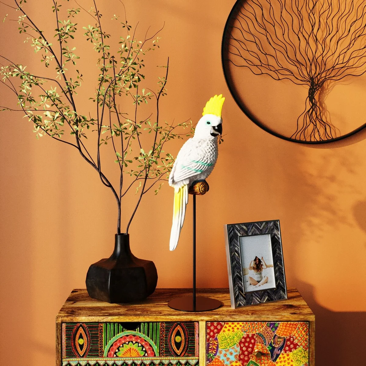 Deco Figurine Parrot Cockatoo White 38Cm