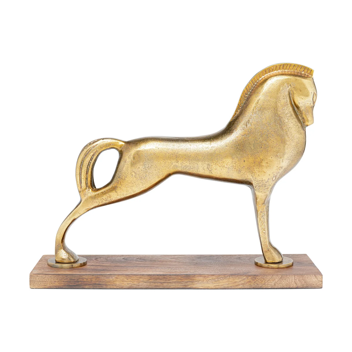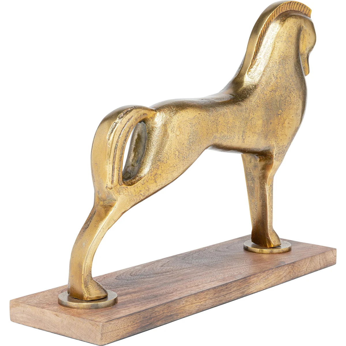 - Beautifully detailed 31cm brass horse sculpture with golden finish