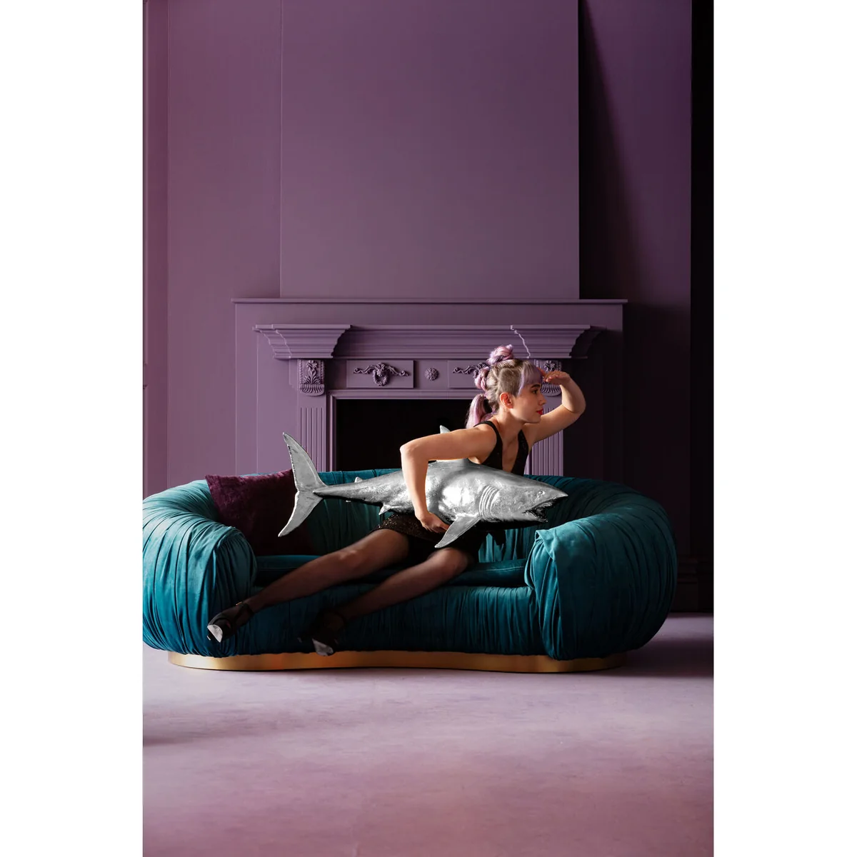 Shark Henry Silver Deco Figurine, 106 CM