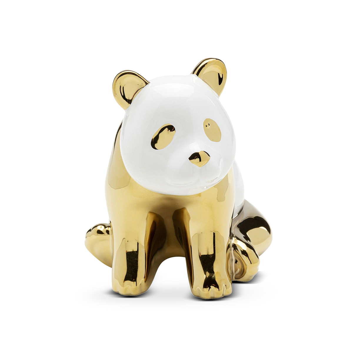 Perfect for adding a playful touch to any room, this gold panda figurine is sure to be a conversation starter. Its durable ceramic construction ensures it will maintain its beauty for years to come, making it a worthwhile investment for your home decor.