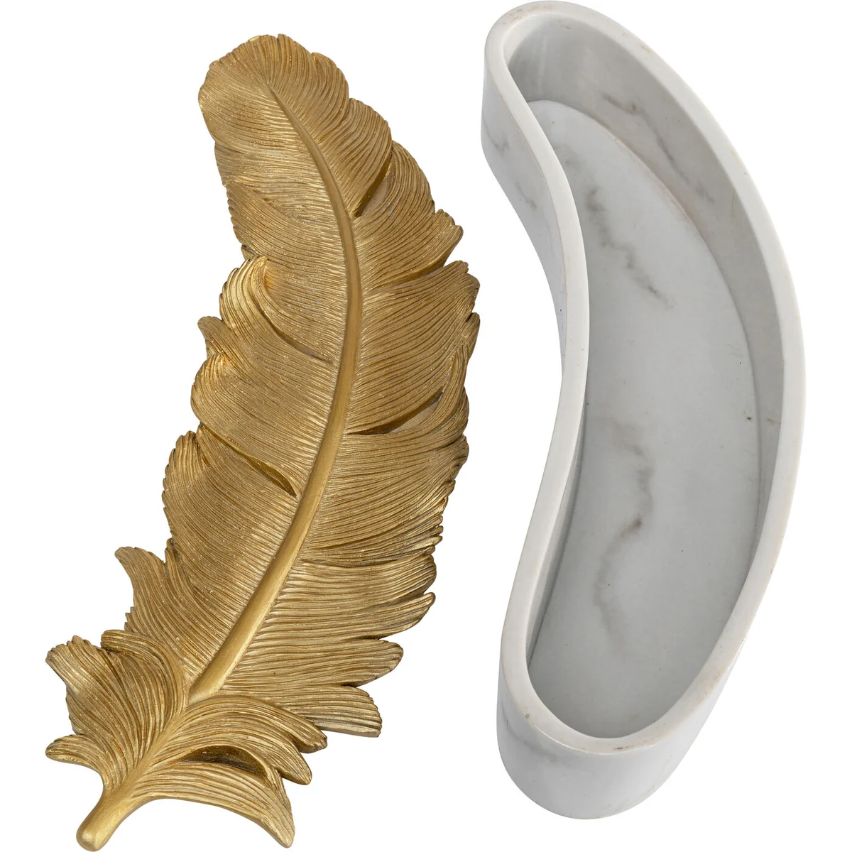 - Box for jewellery with lid, made of imitation stone - The gold finish, white marble look and feather motif add a touch of glamour to the dresser - Not just a jewellery box, also storage for odds and ends in any room - A luxurious gift idea that makes an impression - Sophisticated Art Deco styling and detailed workmanship