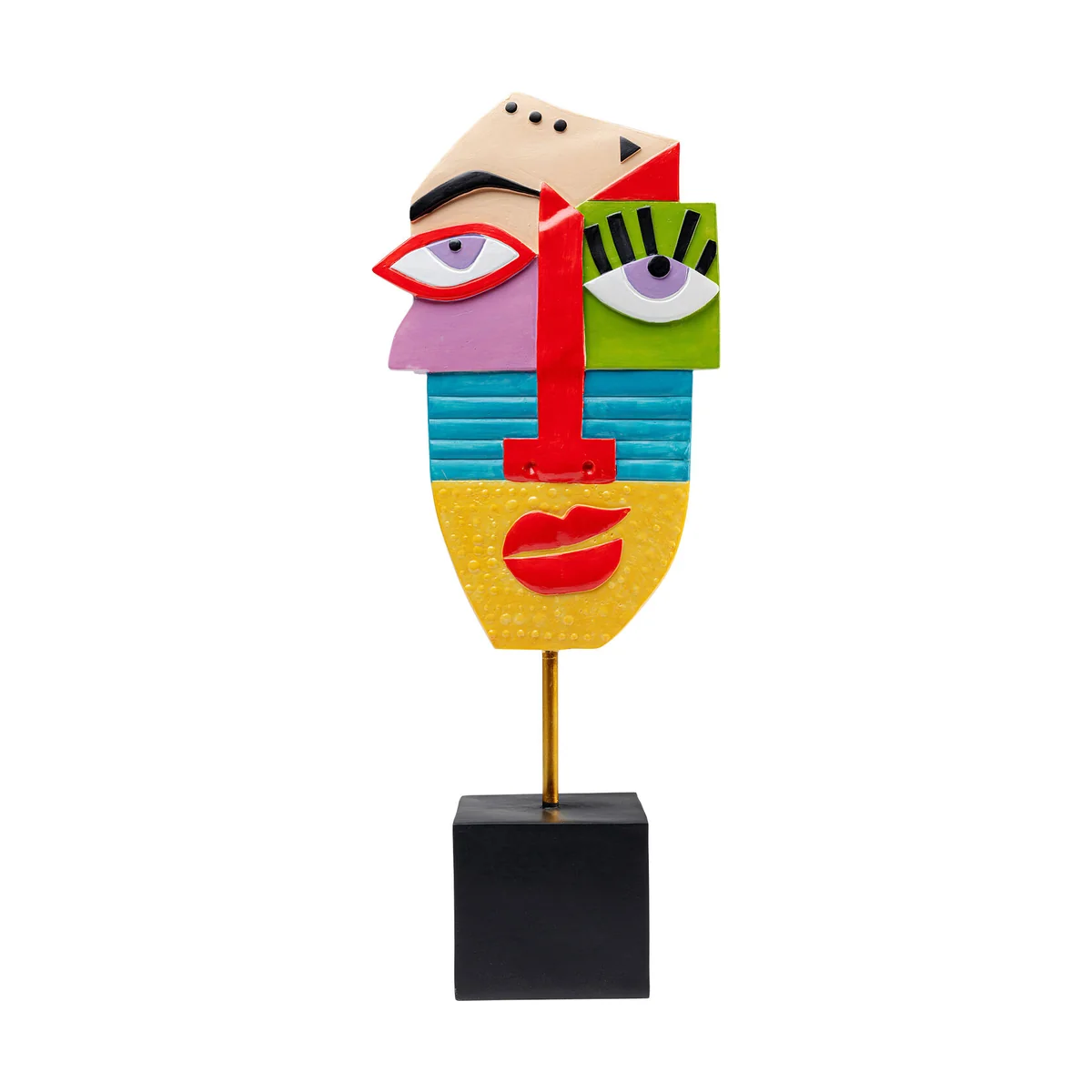 Measuring 52 cm in height, 20.5 cm in length, and 10.5 cm in depth, this deco object is carefully crafted from durable polyresin, ensuring its long-lasting beauty. The abstract face design, combined with a vibrant multicolour finish, is sure to catch the eye and spark conversation.
