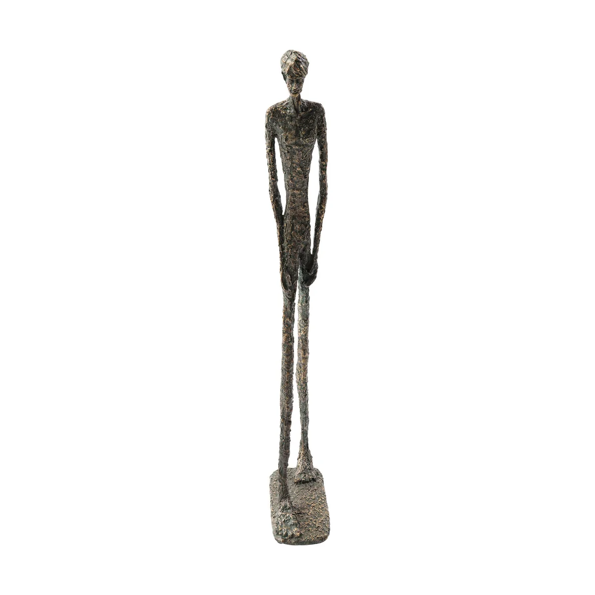 • Slim decorative figurine with bronze finish, 79 x 25 x 10.5 centimeters (H/W/D) • The stylized male figure impresses with its antique bronze finish and imposing height • Richly detailed and in an expressive pose, the figure is an impressive eye-catcher • Adds stylish dynamism to sideboards, consoles or side tables • Each figurine is unique and carefully handcrafted from dimensionally stable polyresin