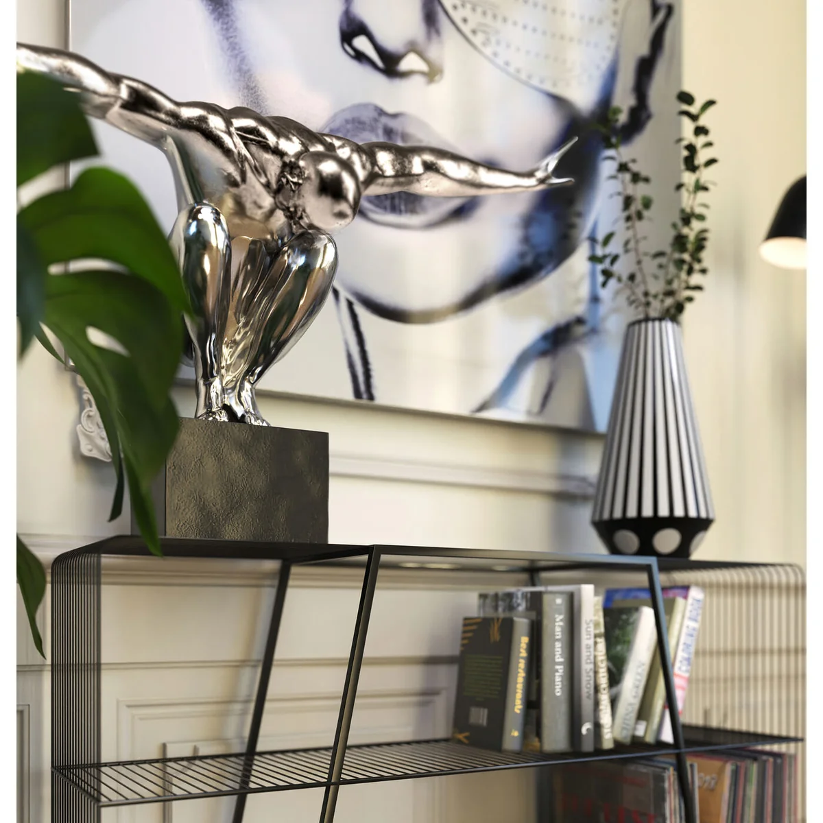 This decor object boasts a size of 100 cm length, 31 cm depth, and 64 cm height, making it a significant presence. Crafted from durable polyresin in a stylish silver black color, it features an athletic figure in motion, adding dynamic energy to your room.