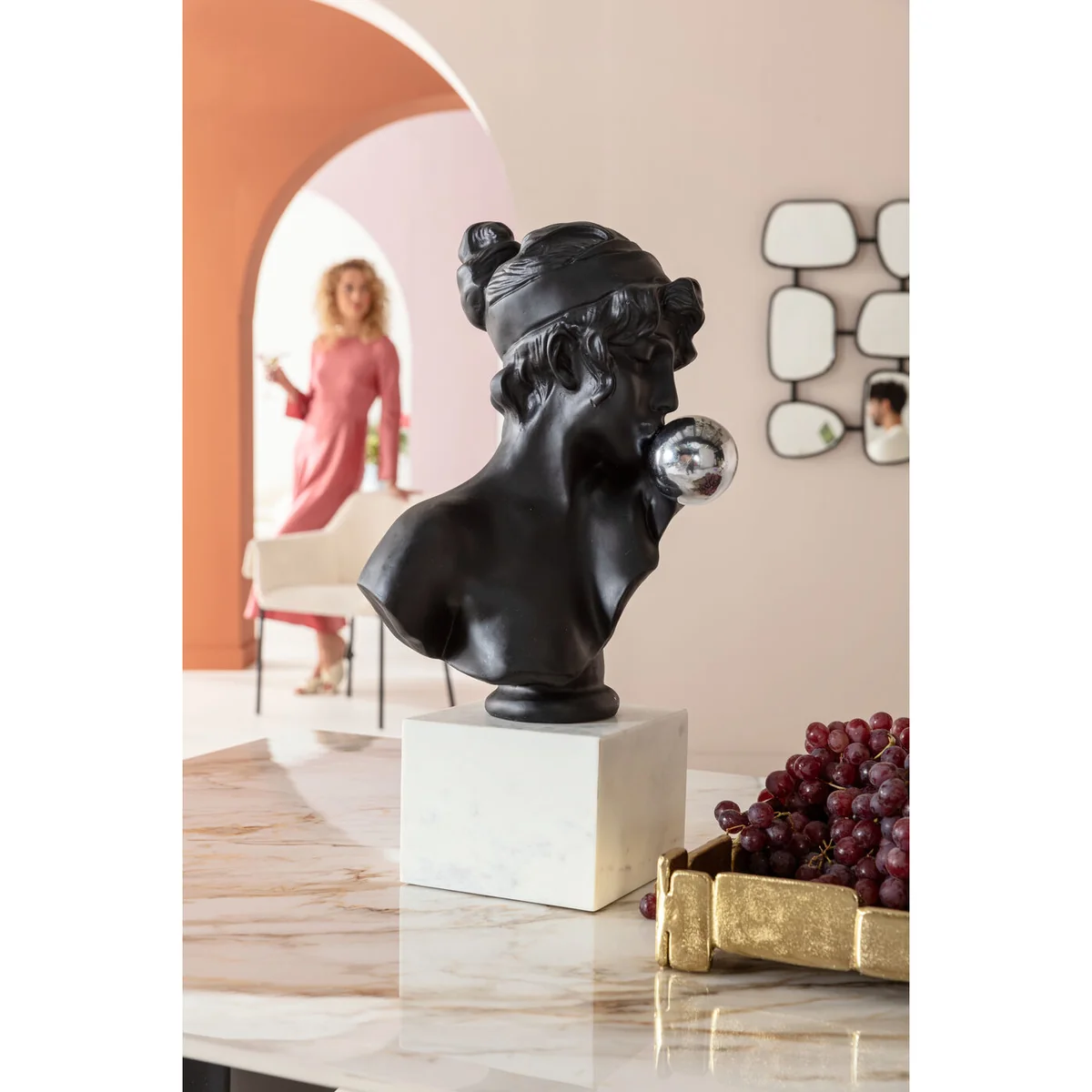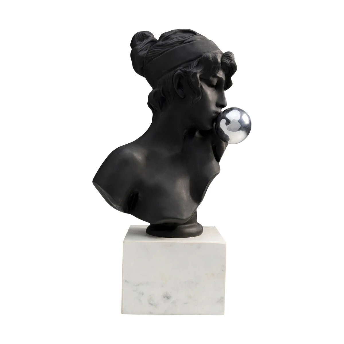- XL decorative bust in black, white and silver, sized 58 x 28 x 24 cm (H/W/D) - Pop Art meets the ancient world in this typical creative sculpture decoration by KARE - An elegant touch is provided by the solid base made of real white marble - The decorative head is made of polyresin, handcrafted and painted matt black