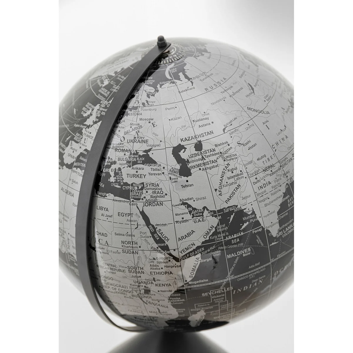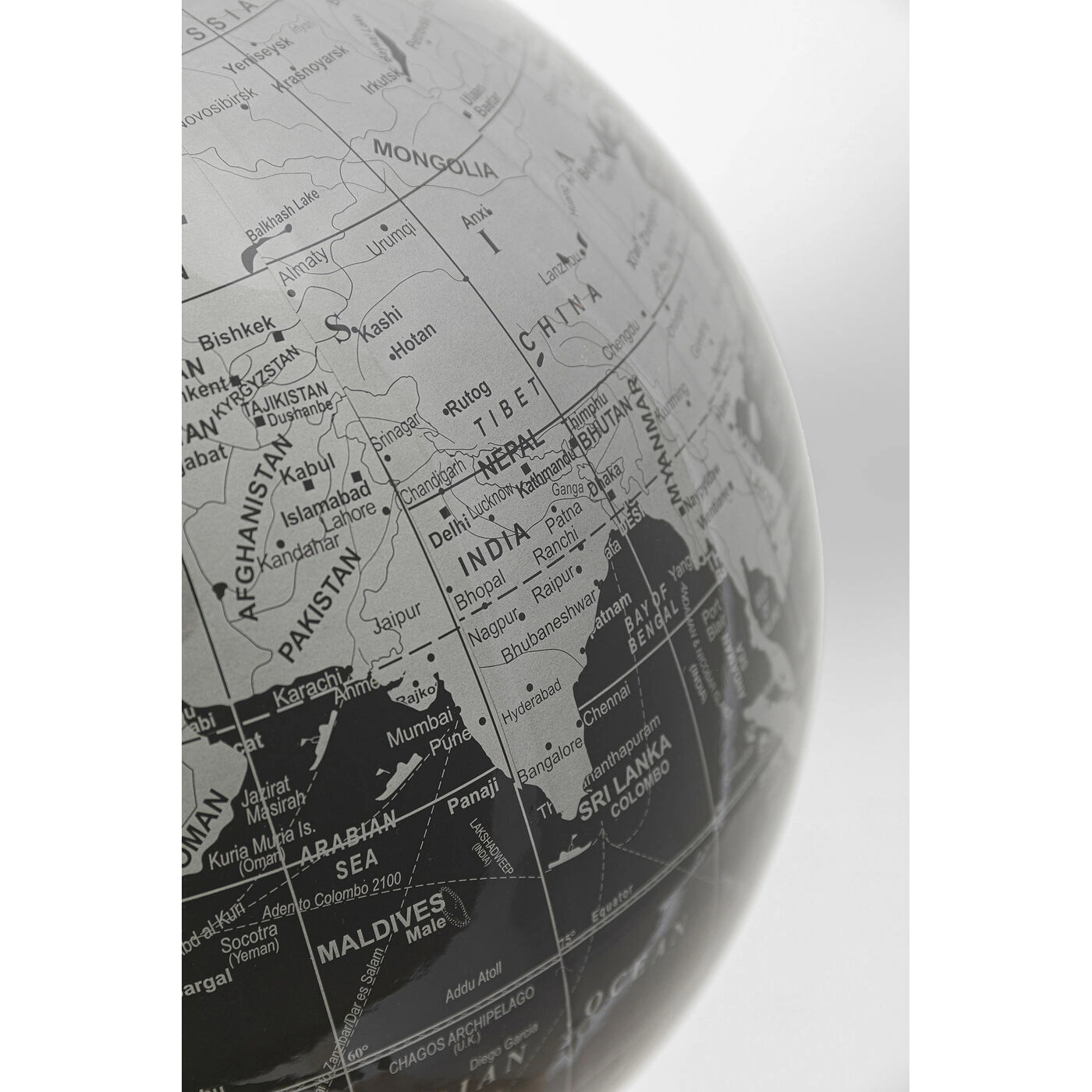 With this eye-catching decorative piece, all is still right with the world: the globe in elegant black and grey balances securely and stably on an almost 1m-high base. The base is made of stainless steel and has a satin finish. The map of the world is made in the traditional way from paper and has a clear lacquer finish. Straight lines and perfect curves dominate the look. Particularly practical: with this treasure you can refresh your geographical knowledge or search for your next holiday destination in style. As you can see: this impressive object in modern design leaves hardly anything to be desired. Design: Produktsalon Susanne Uerlings, Germany.