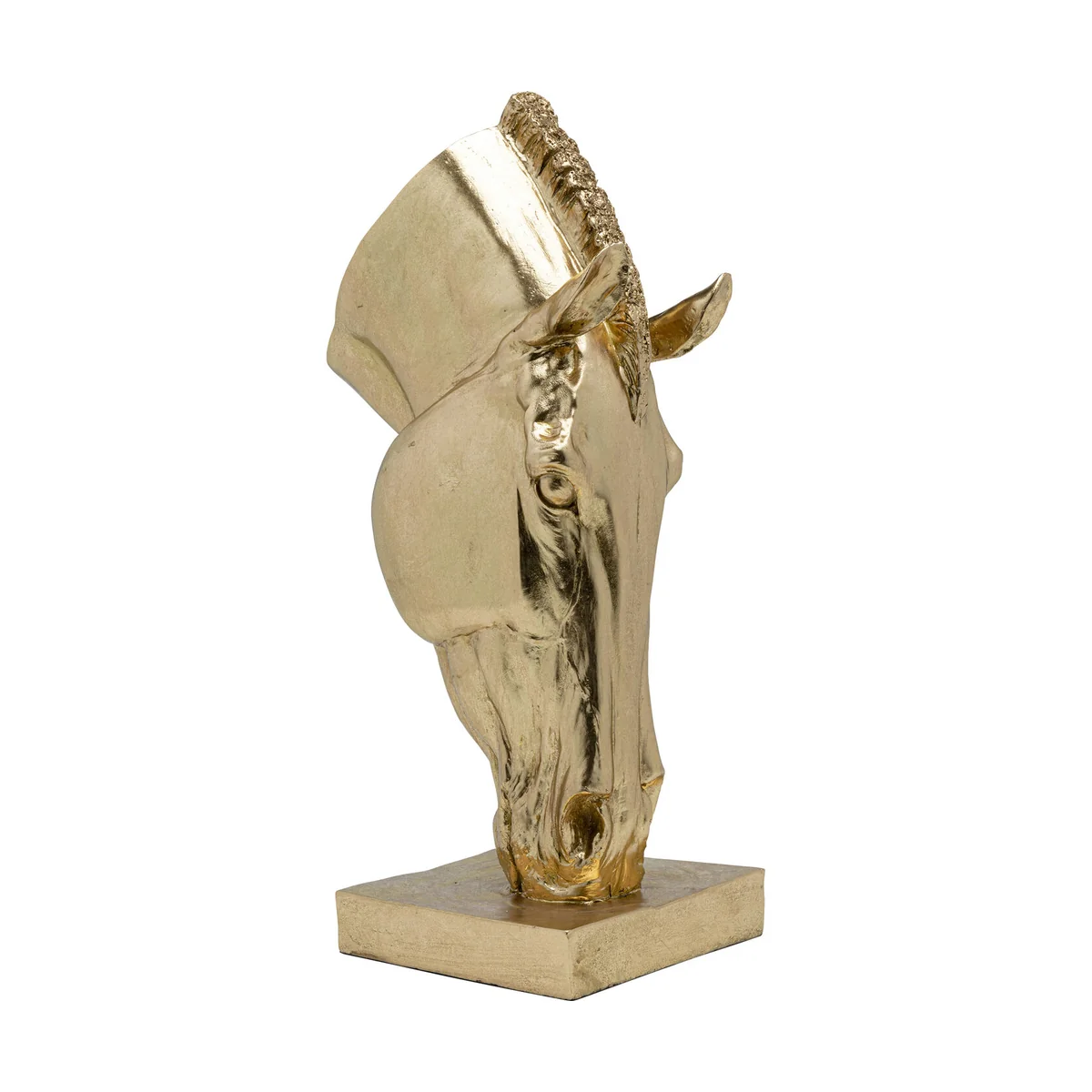 - Handmade: each decorative object with a horse's head is partly handcrafted and therefore unique - Sculpture in an extra-large format: the large ornamental figure with a height of 57 cm brings clarity and structure to your styling - Many uses: ideally placed on a bookshelf, on large sideboards or in the entrance hall - Design with a symbolic character: an animal figure for horse fans and all those who go for elegance and glamour in their decoration - Splendid colour: the head and base made of polyresin are foiled in gold - this brings brilliance to your home