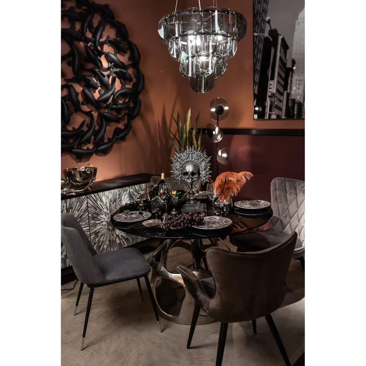 Perfect for art enthusiasts and those with a unique taste in home decor, this skull deco object offers a distinctive aesthetic appeal. Its large size and dramatic design make it an impactful addition to any interior setting, while the black color ensures it blends seamlessly with a variety of decor styles.