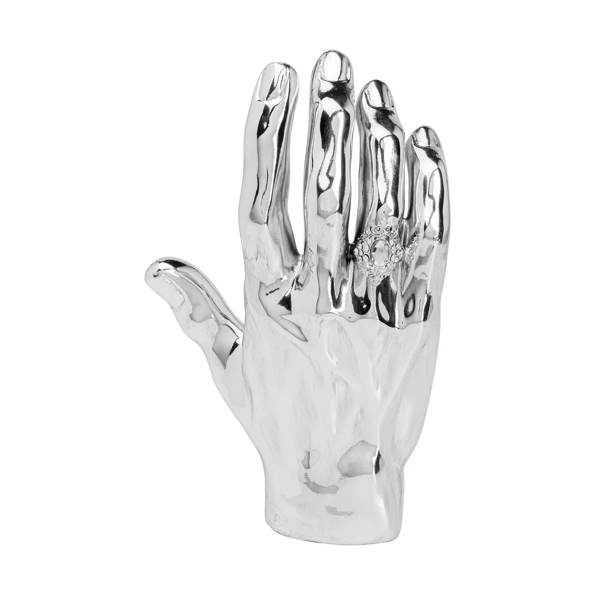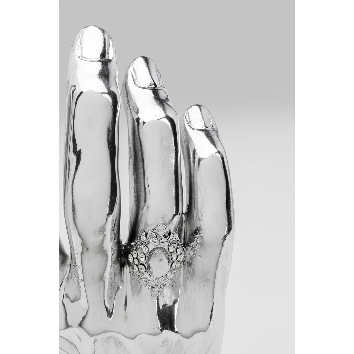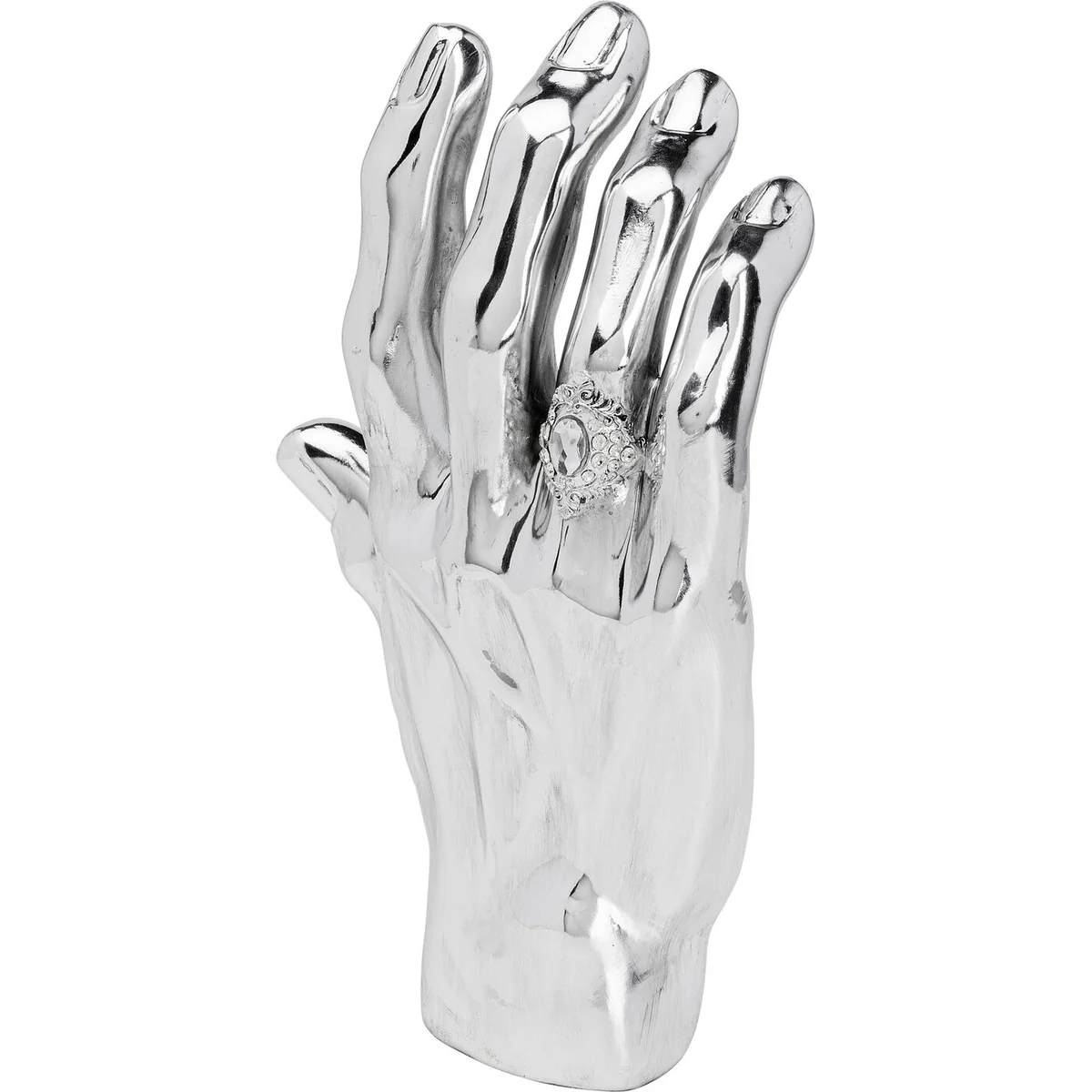 - A large, distinctive decorative object made of cast stone in the shape of a hand - decorative ring included - A modern furnishing accessory with an artistic character - Practical and unusual as a holder for your jewellery - Handcrafted with love - each piece is unique - Also a real highlight when lying down, when it can serve as a decorative bowl for your keys, for example