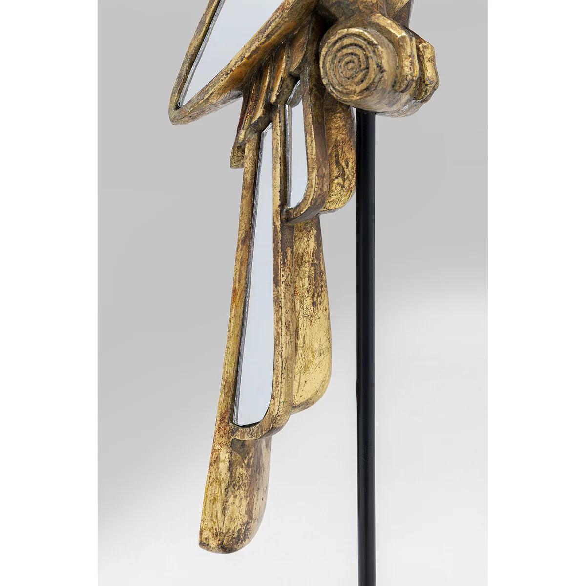 This striking ornamental figure will inspire your creativity when it comes to furnishing: The large-format bird with the reflecting plumage plays with the light of its surroundings and is an attractive eye-catcher from all sides. That's why it can be placed in a prominent and central position or as an undemanding pet next to the sofa or lush houseplants. The parrot figure is so easy to care for and attractive that you can also use it to please your friends with a clear conscience.