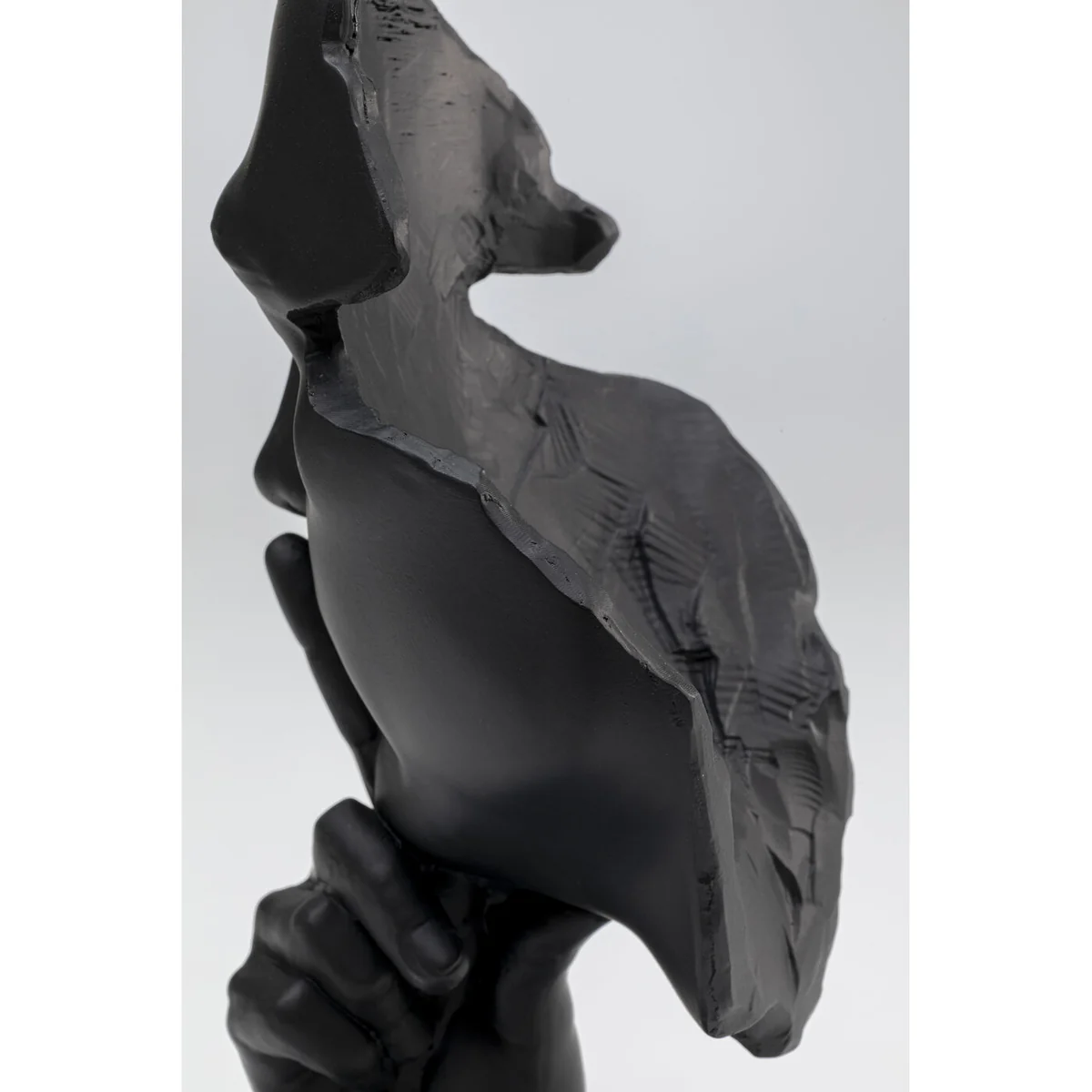 Add an artistic touch to your space with the Quiet Face Deco Object in Black Polyresin. Its distinctive design and dark hue make it a stand-out piece.