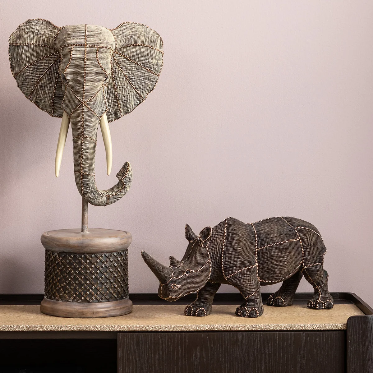 Rhino Rivets Pearls Deco Object, Brown