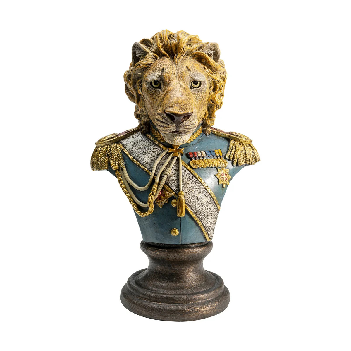 - A majestic lion in uniform made of lacquered cast stone as a decorative object - A conversation starter and humorous decoration for your home - Perfect for adding a lively touch to shelves, sideboards or display cabinets - Each piece is a unique handmade specimen