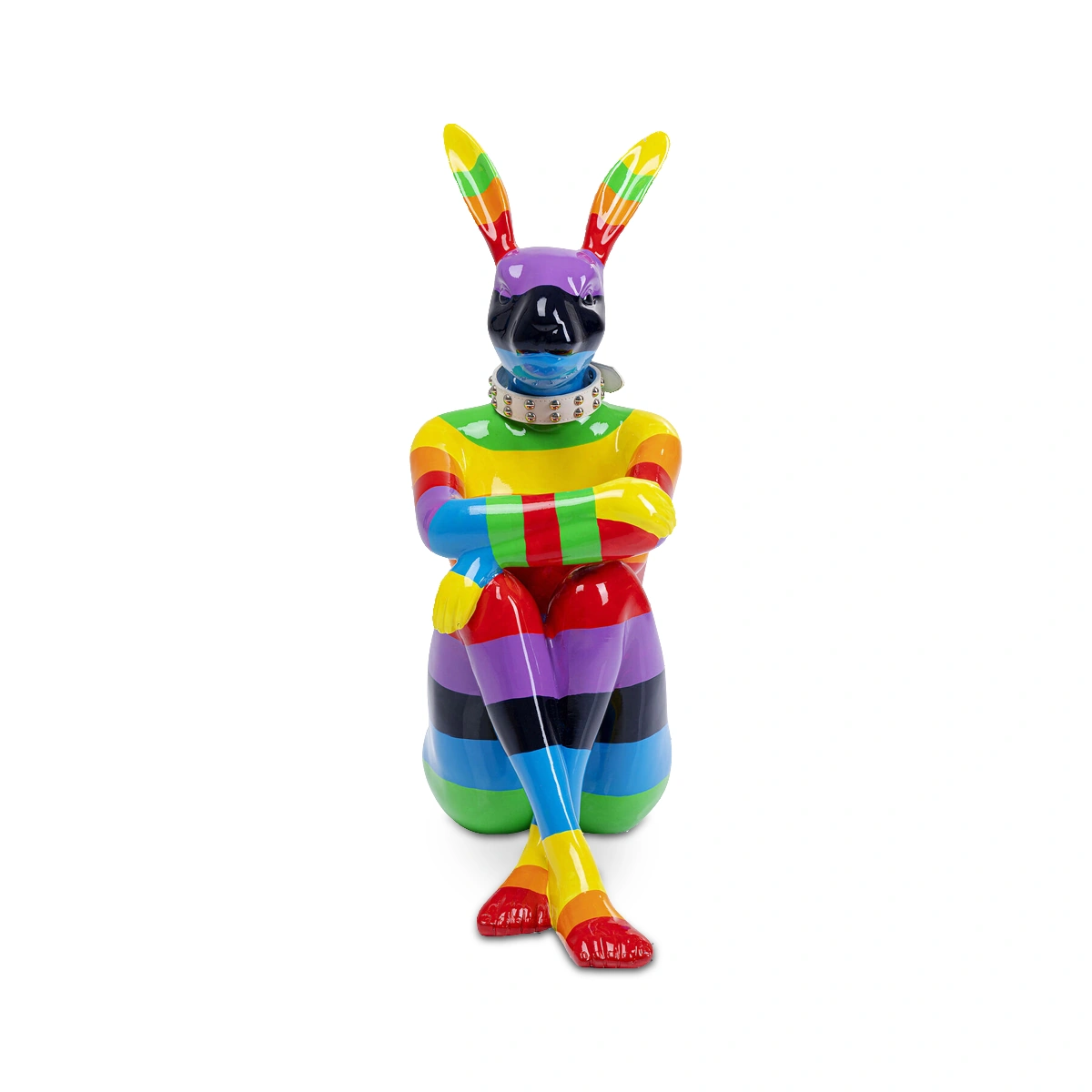 Rainbow Fiberglass Sitting Rabbit Decorative Object