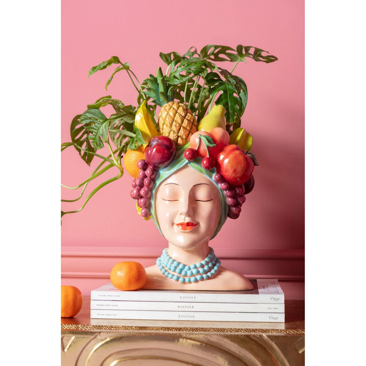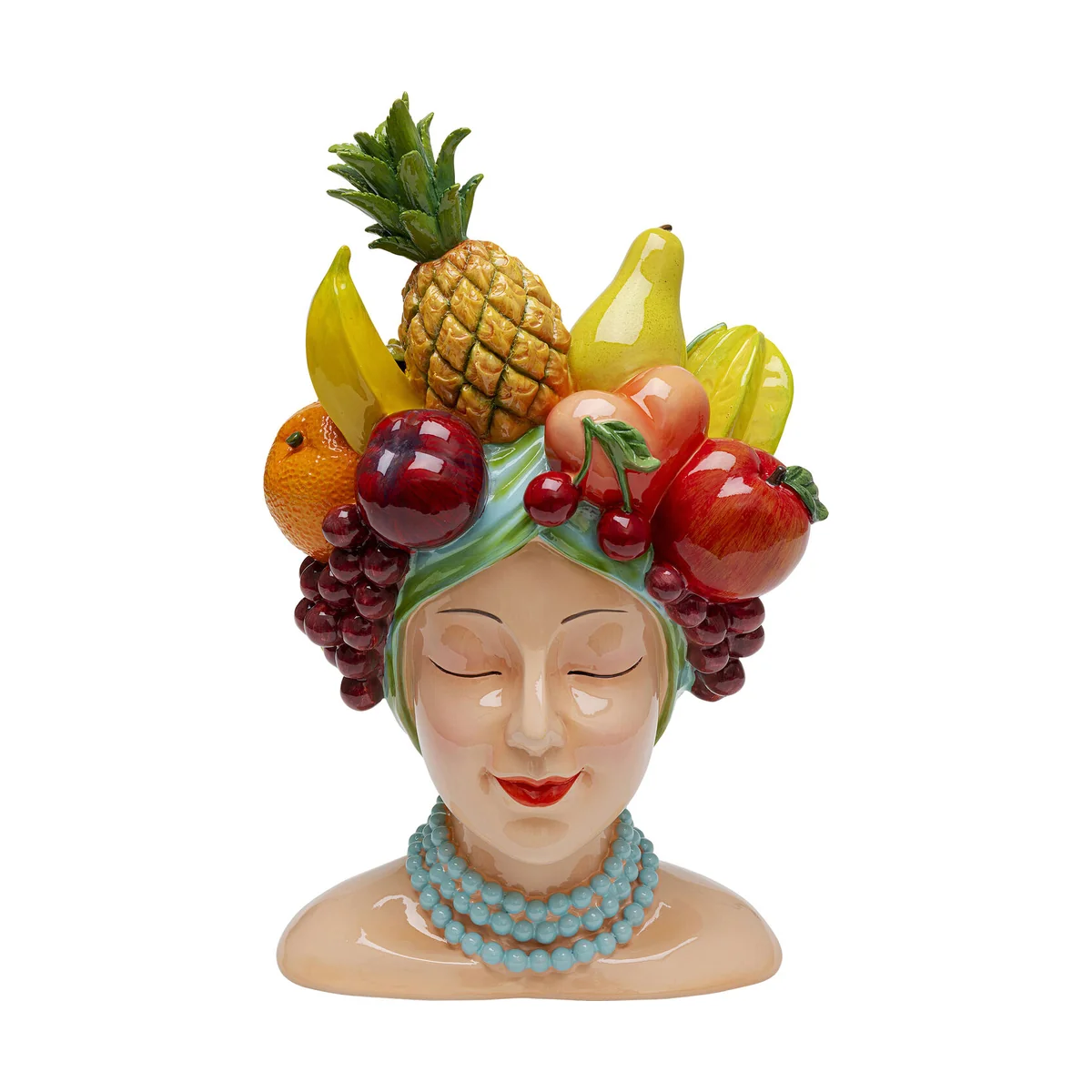This vase features a unique, bold design that combines various fruit motifs, made from high-quality polyresin for long-lasting durability. With dimensions of L 23 cm, D 21.2 cm, and H 36.7 cm, it's an eye-catching piece that doesn't overpower your space.