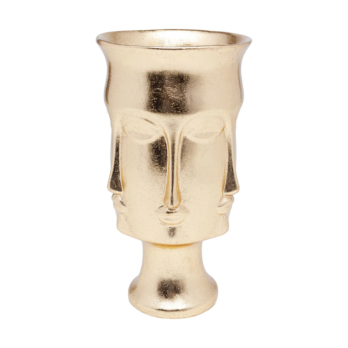 - Decorative vase with a Faces design in gold - A vase object with many faces - a really trendy piece - In the shape of a goblet it’s a gem on the shelf or sideboard - A unique handmade piece made of fibreglass