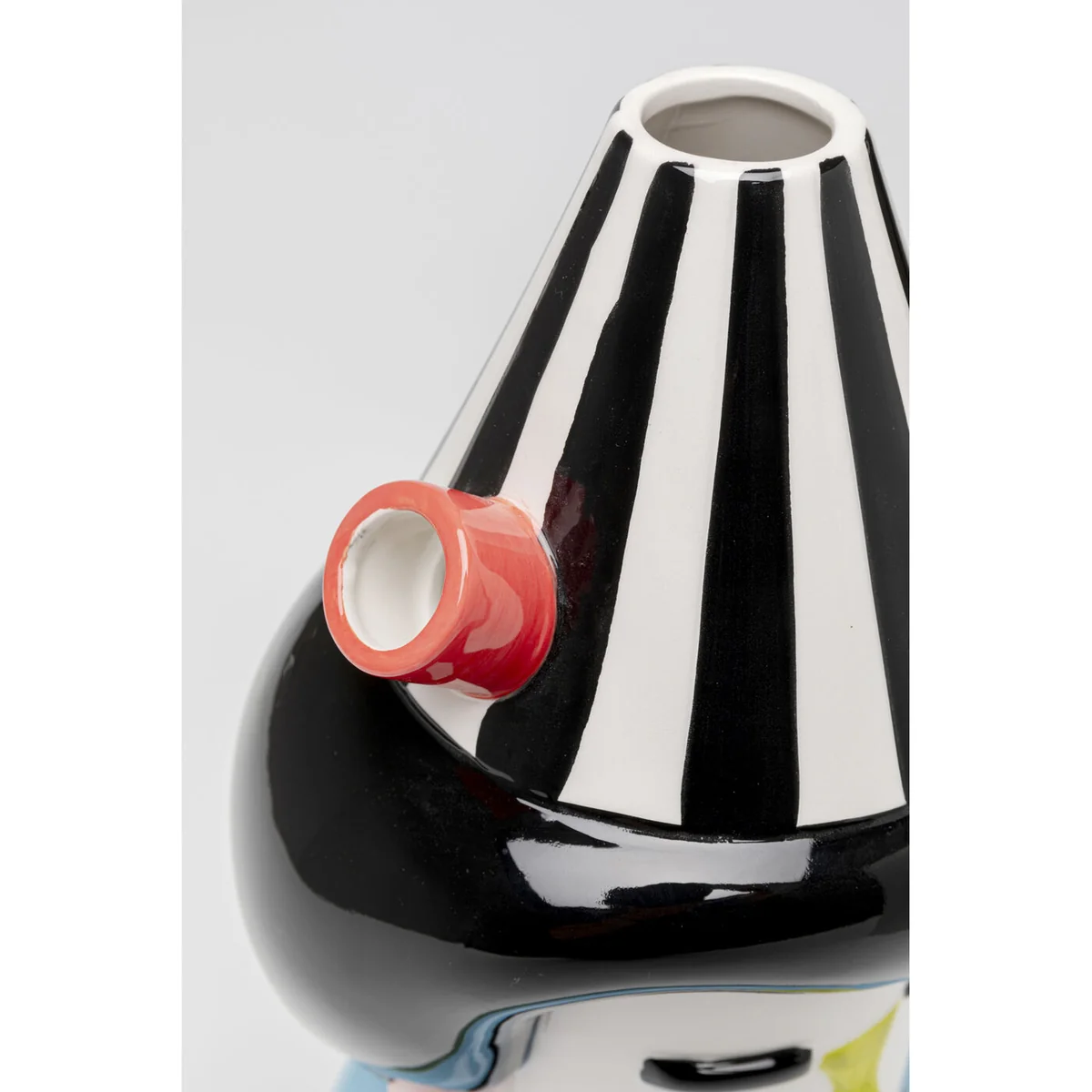 • Fancy decorative ceramic vase in the shape of a man's bust with bold colours and gold highlights • With abstract, geometric shapes the bust sets a highlight on chests of drawers and sideboards • A radiant appearance: the surface of the vase has a glossy glaze • The ideal gift for art lovers and décor fans with a penchant for the unusual • A successful balancing act: the vase can stand on its own, while the small openings in it are ideal for creative decorating