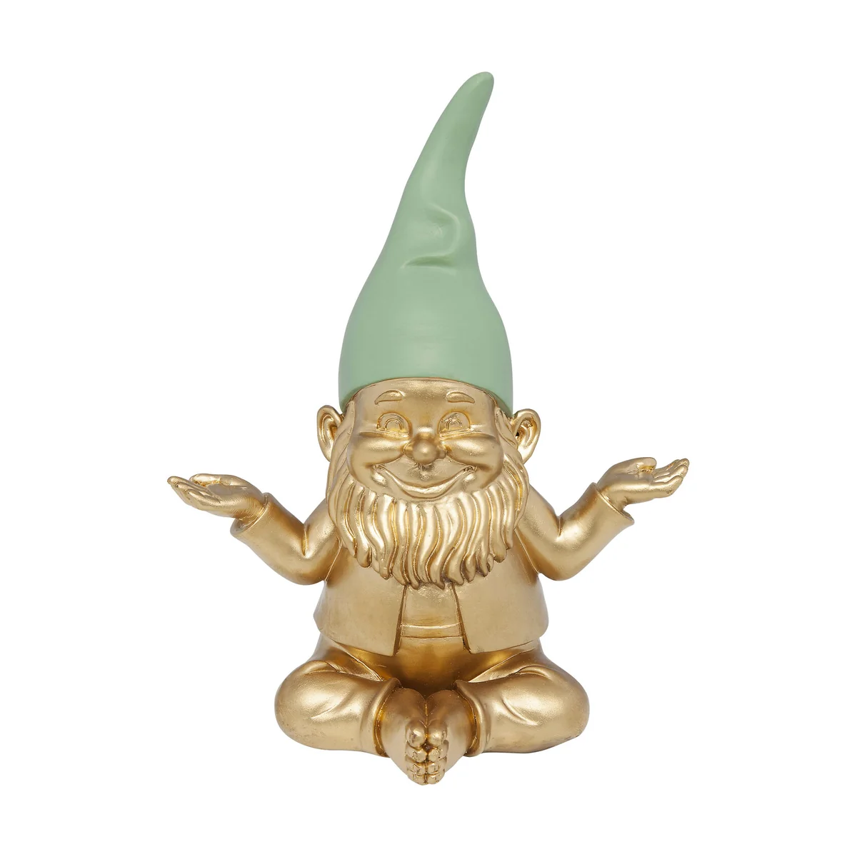 • A great gift idea: if you're looking for the perfect gift for garden lovers and yoga fans, you've found it! • An out-of-the-ordinary treasure: there are lots of meditating Buddhas - but who has a meditating garden gnome? • Trendy style: this attractive decorative figure catches the eye with its gold-coloured body and charming green cap • Lovingly crafted: the garden gnome made of artificial stone is impressive with its detailed workmanship • An extendable decoration: a gnome rarely comes alone, so the decorative figure can be combined with other gnomes from the series