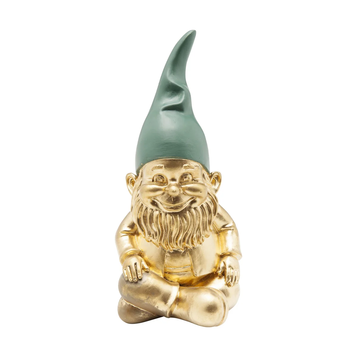 • Small decorative gnome in gold and green, 18.5 x 9 x 8.8 centimetres (H/W/D) • This charming gnome impresses with its golden and green color scheme, which creates an elegant accent • Perfect for sideboards, window sills or as an original highlight in a plant arrangement • The compact size enables versatile decoration options - individually or in combination with other figures • Made from dimensionally stable polyresin and painted