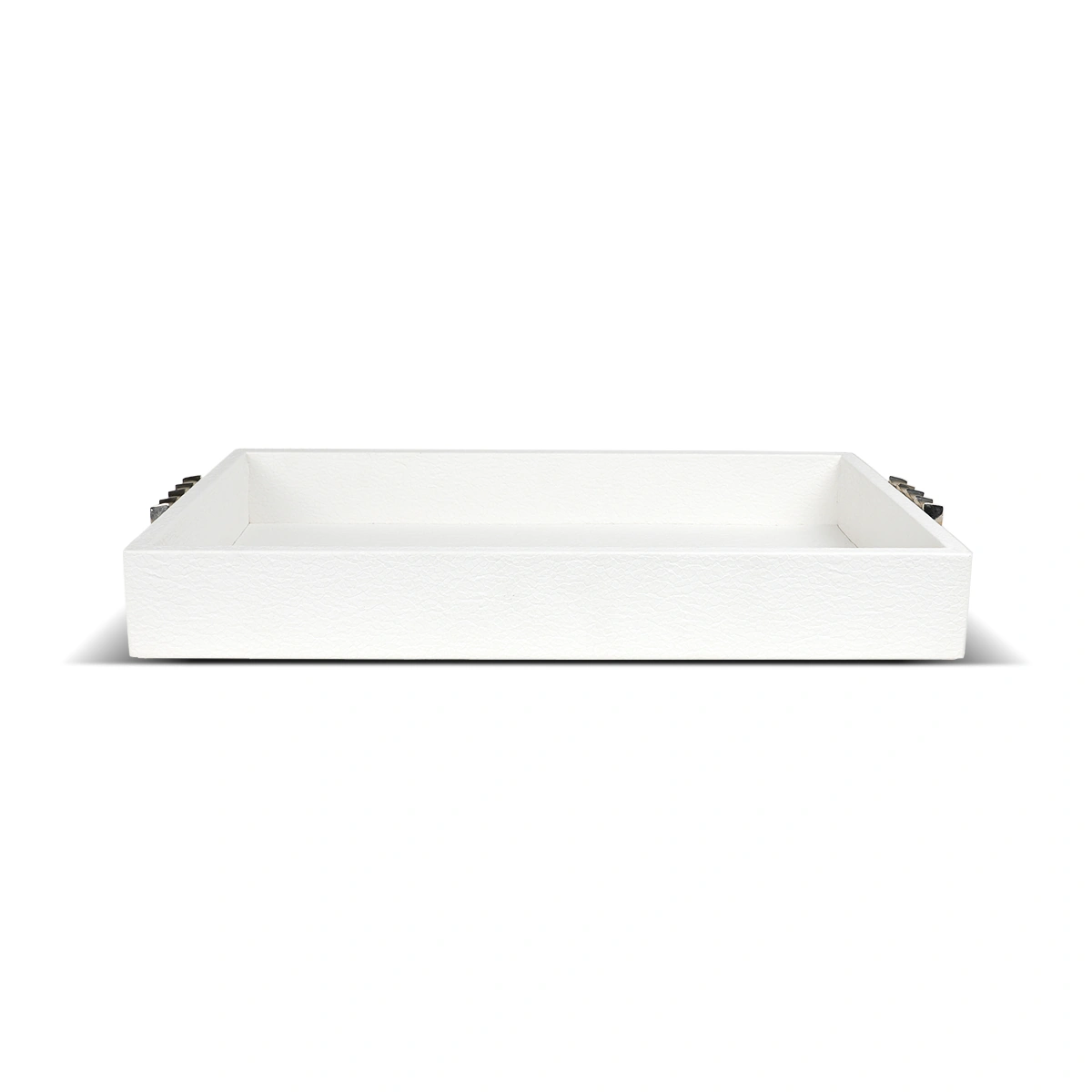 Large White Prism Decorative Tray in Faux Leather and Aluminium