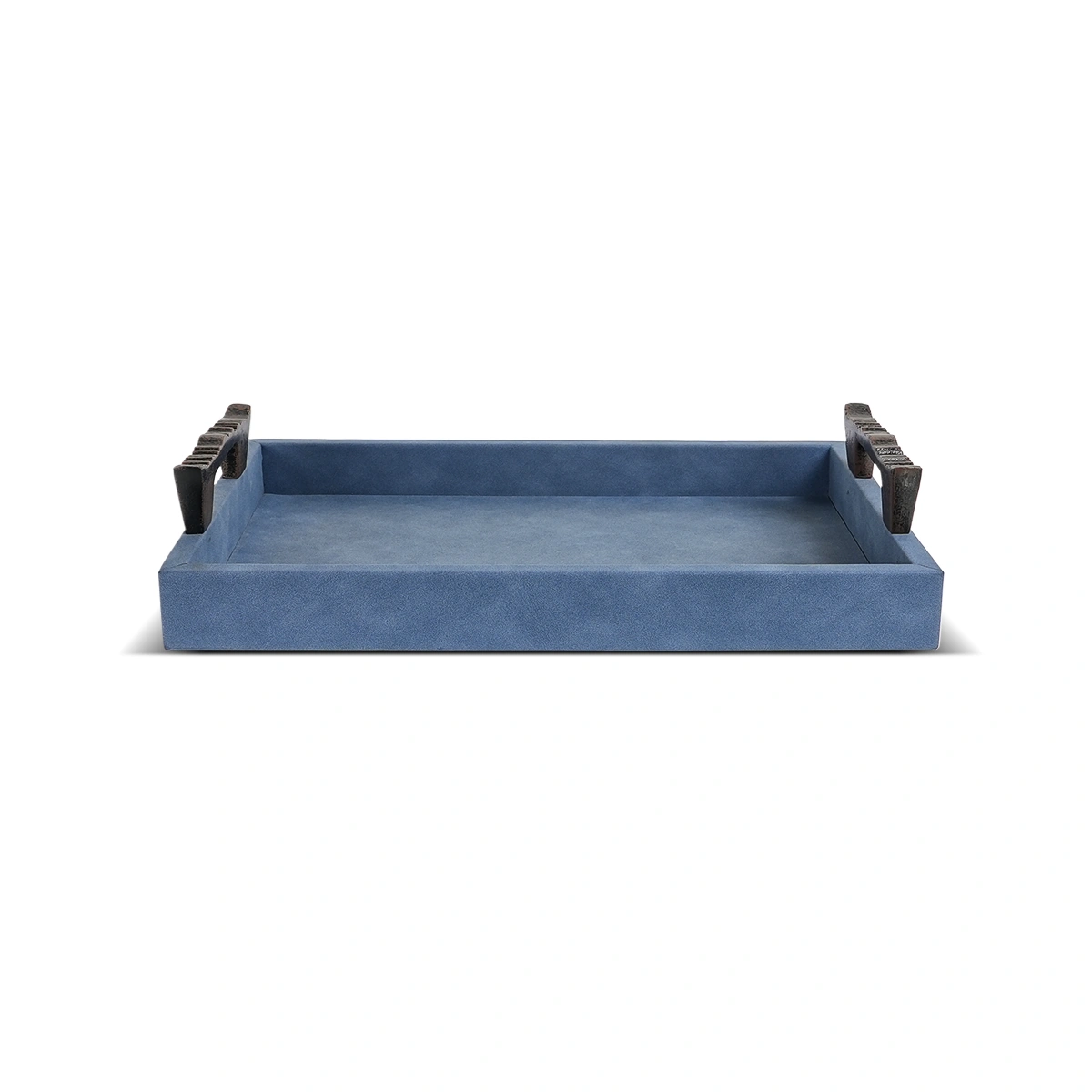 Introducing the Ice Breg Small Decorative Tray, a stunning blend of aesthetics and functionality in blue faux leather and aluminium.