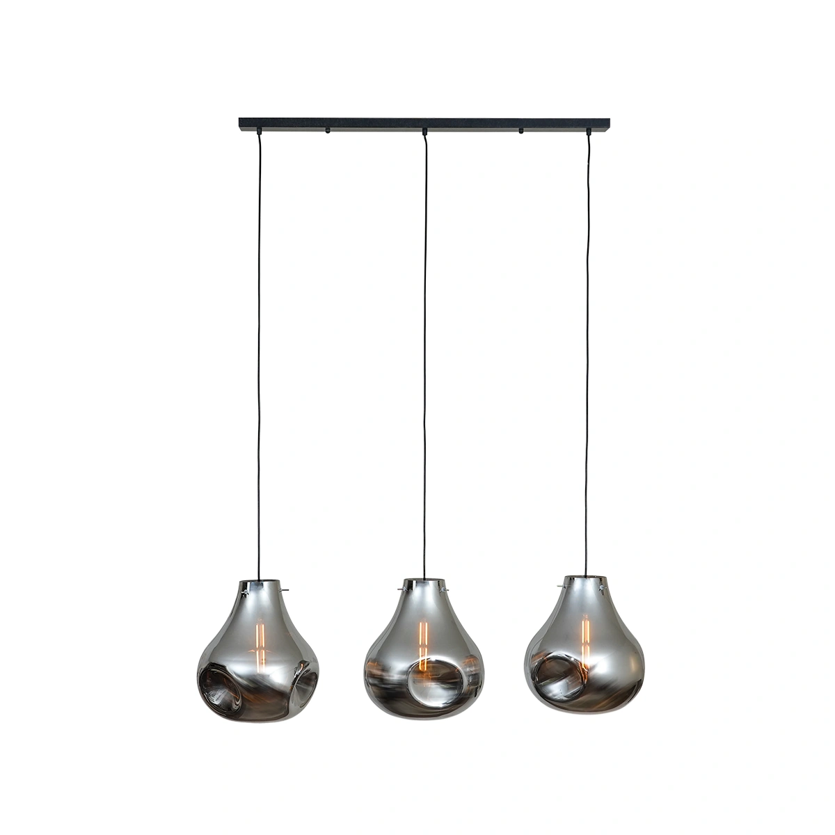 When hung over a dining table or in a foyer, the Artic Black Dent Glass Hanging Lamp creates a warm and inviting atmosphere. Its modern design complements contemporary decor, while its black color makes it versatile enough to match any color scheme.