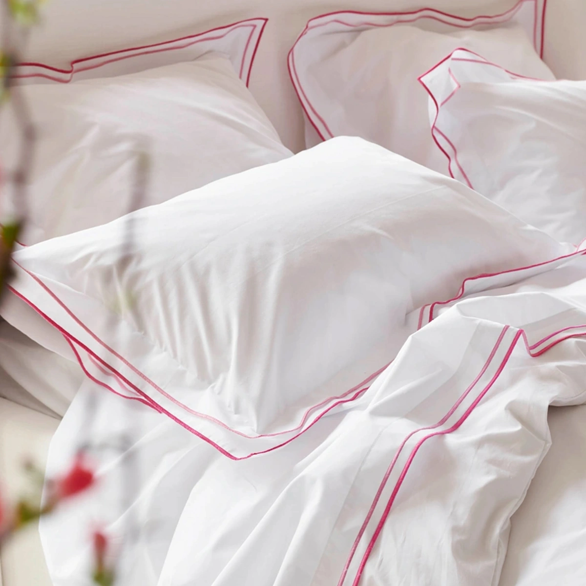 Experience five-star comfort with our 400 thread count cotton percale bed linen, crafted in crisp white with elegant double-edge embroidery. Featuring a refined Oxford pillowcase and a coordinating framed duvet cover, this premium set brings luxurious hotel style to your bedroom. Produced in Oeko-Tex® Made in Green certified factories.