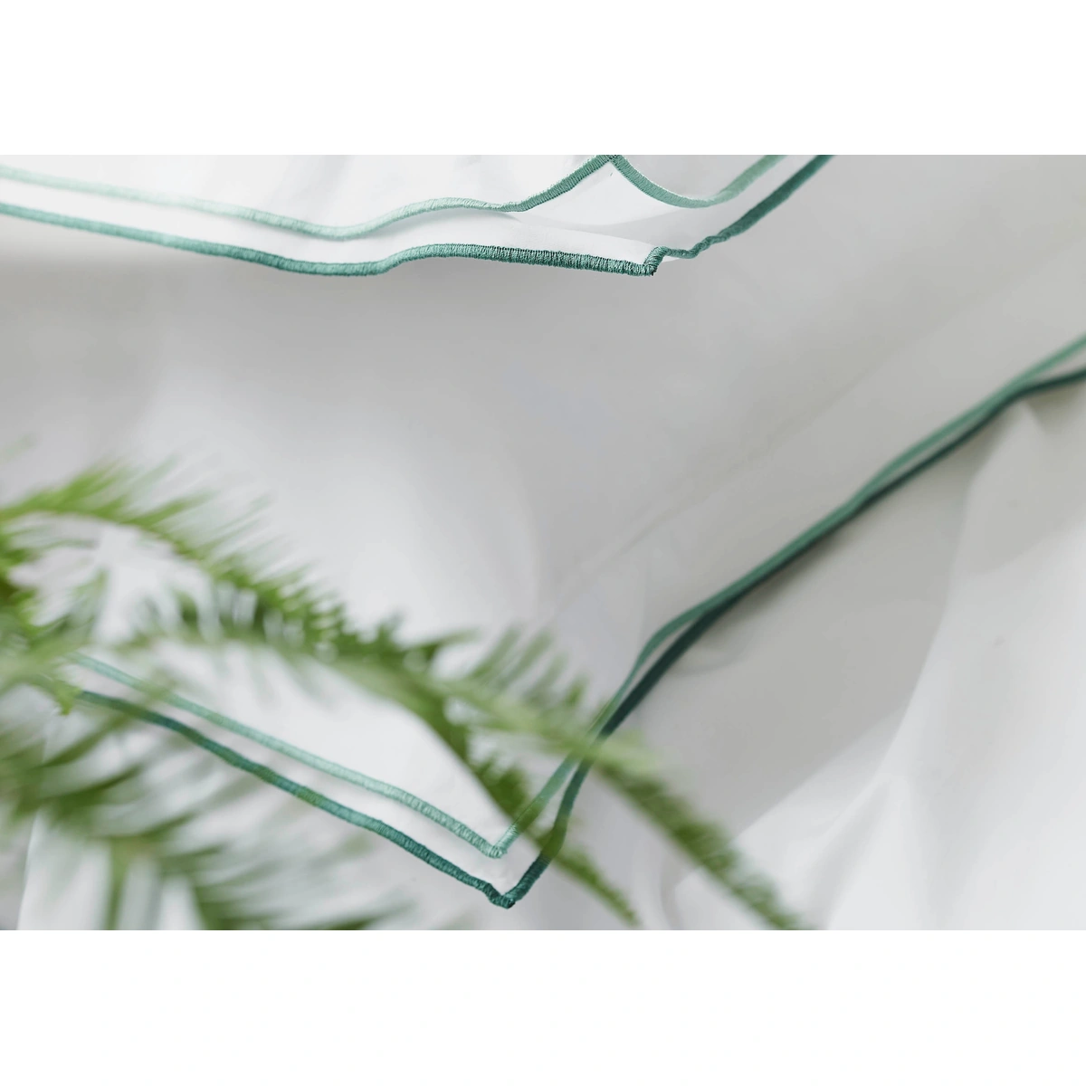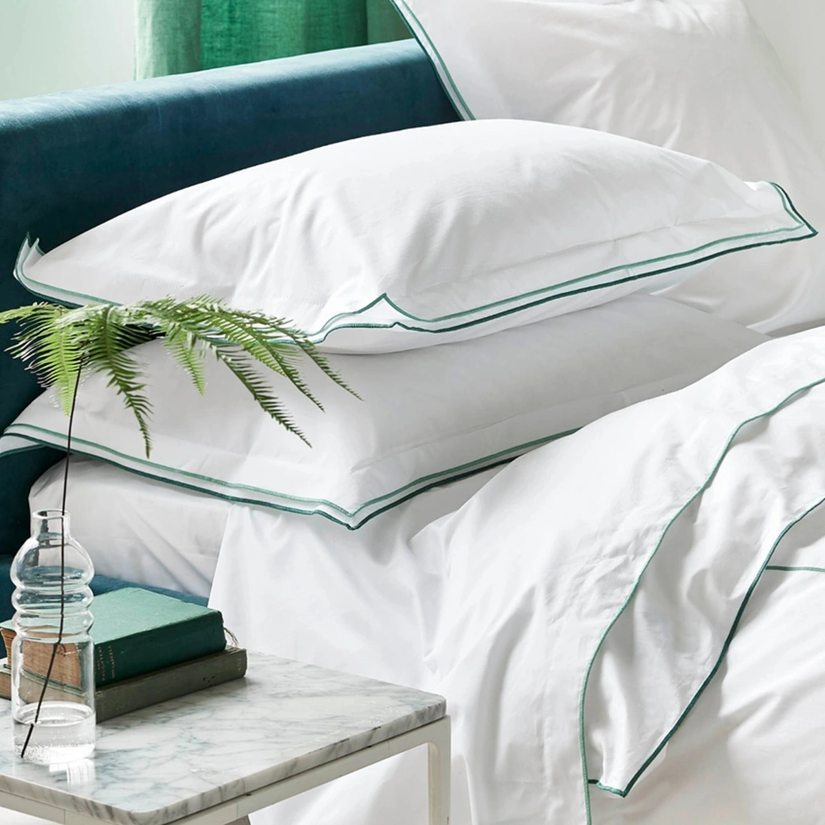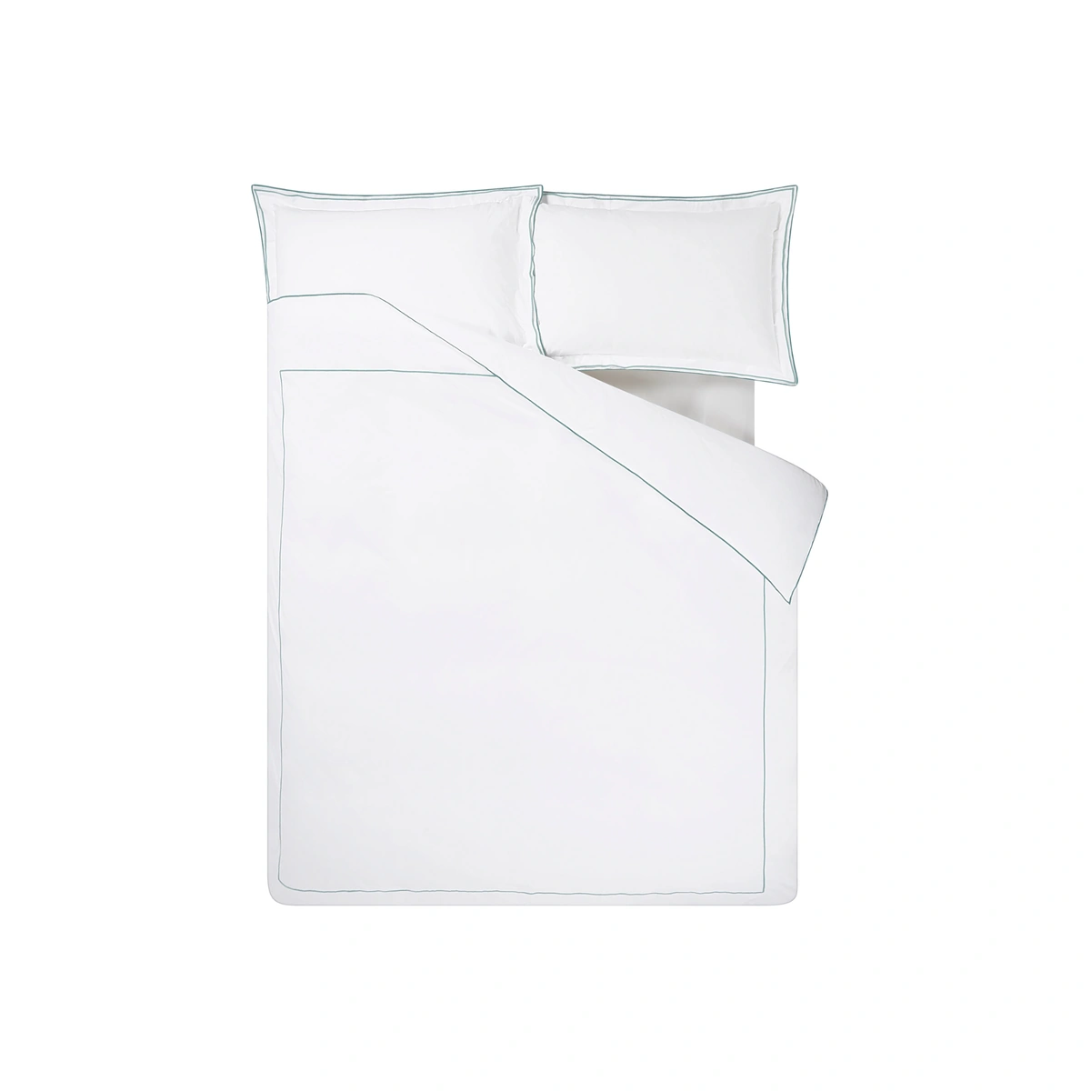 Experience five-star comfort with our 400 thread count cotton percale bed linen, crafted in crisp white with elegant double-edge embroidery. Featuring a refined Oxford pillowcase and a coordinating framed duvet cover, this premium set brings luxurious hotel style to your bedroom. Produced in Oeko-Tex® Made in Green certified factories.