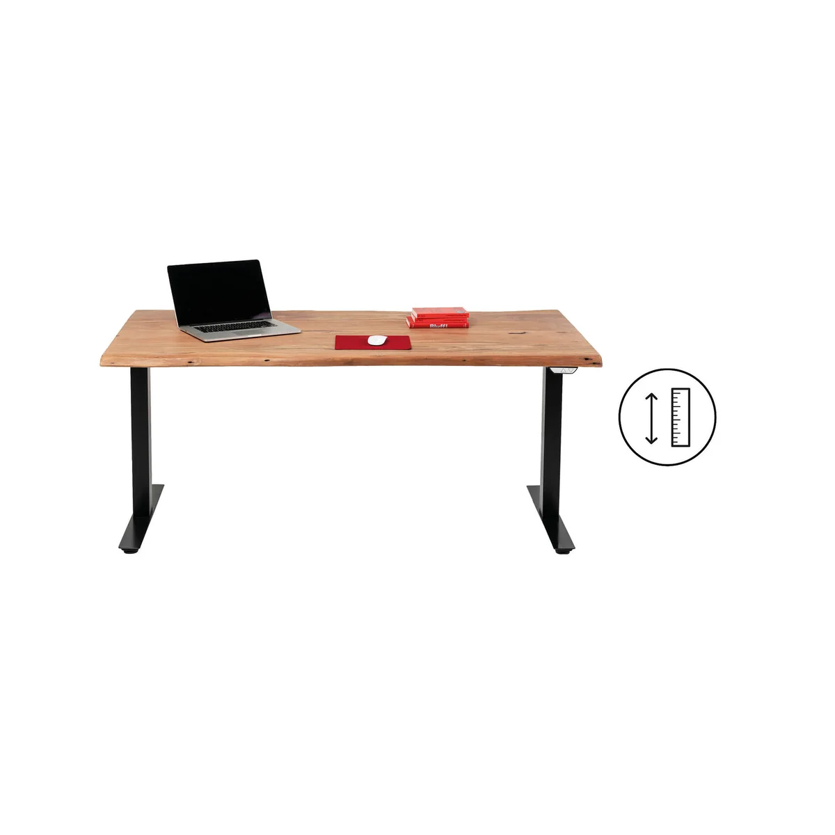 This height-adjustable desk combines functionality and timeless design. The electric, infinitely variable height adjustment ensures flexible working by effortlessly adapting to the individual posture - for more ergonomics and less tension. The high-quality acacia wood top not only brings a natural wood grain into play, but is also particularly easy to clean thanks to its lacquer finish. The sturdy steel frame in black blends perfectly into any interior and makes the table a stylish all-rounder that cuts a fine figure both in the office and in the home office.