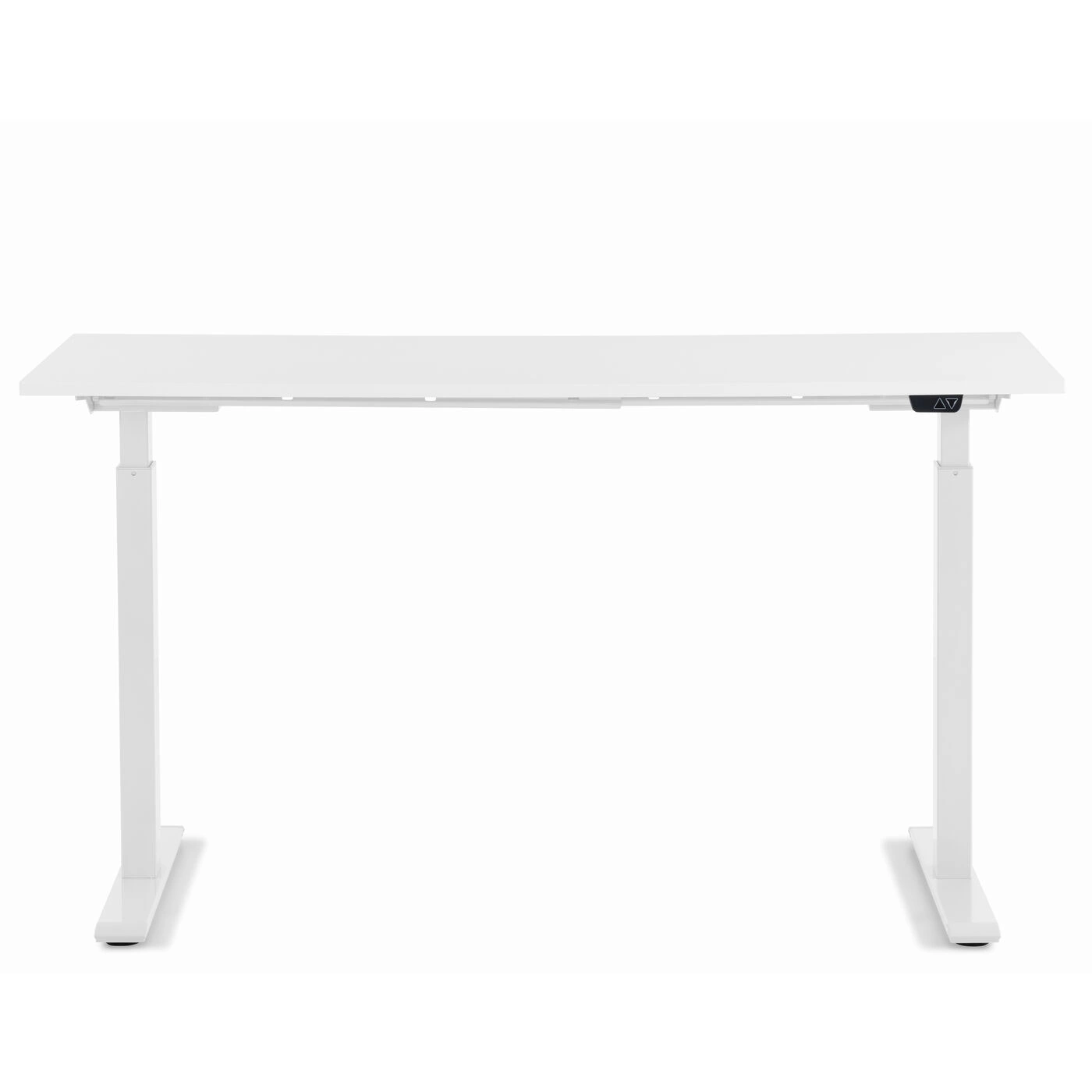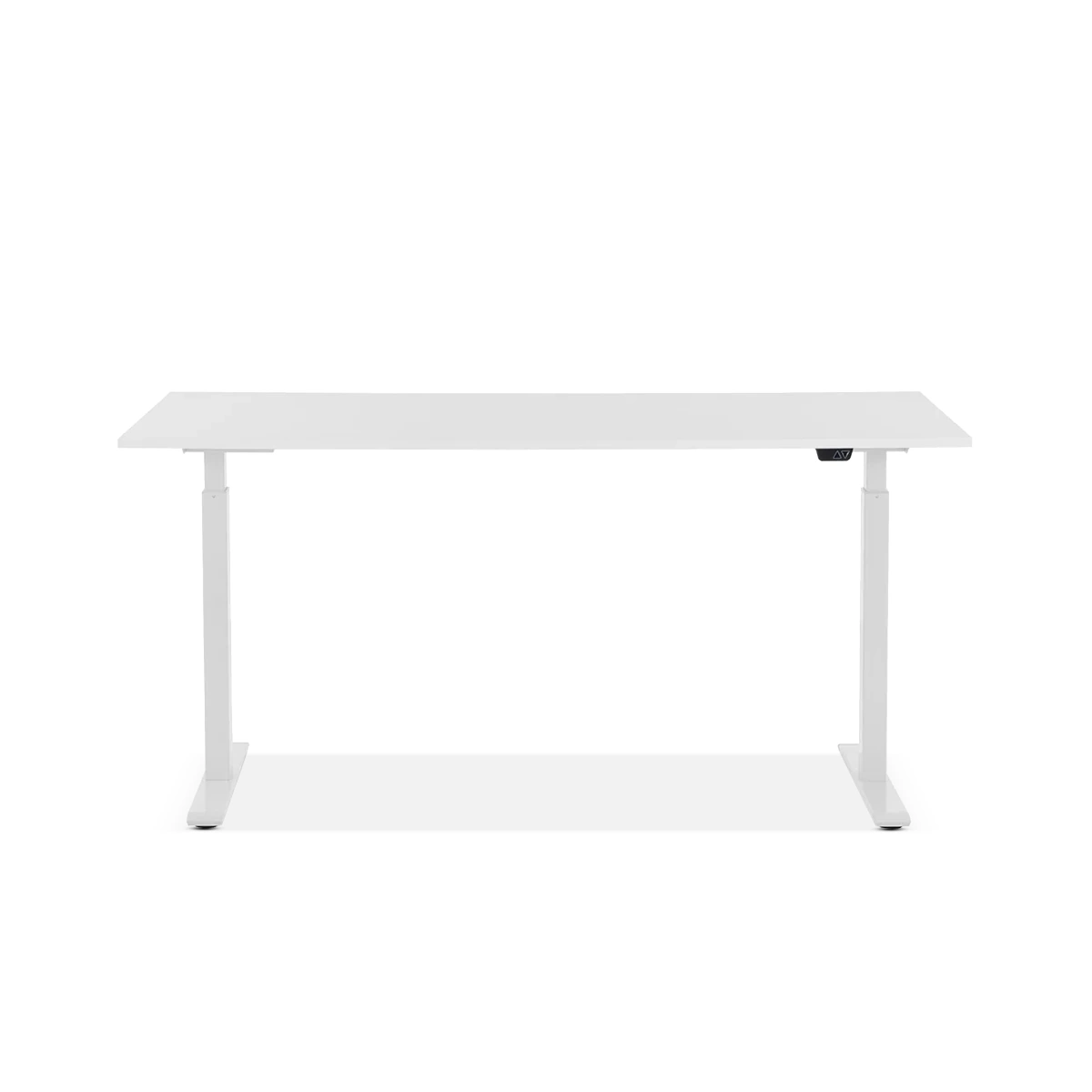 • A rectangular, electrically height-adjustable desk with a robust, white black MFC top and a lacquered steel frame in white