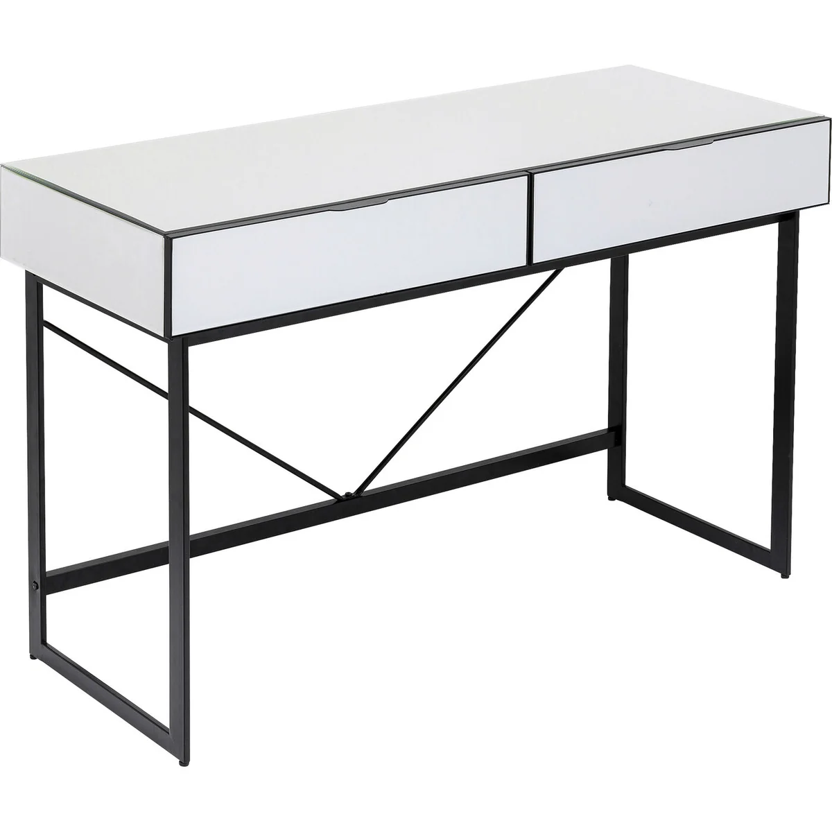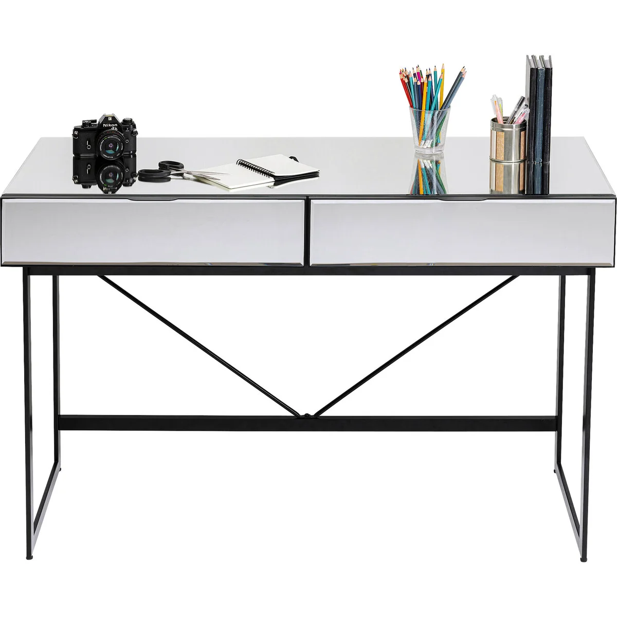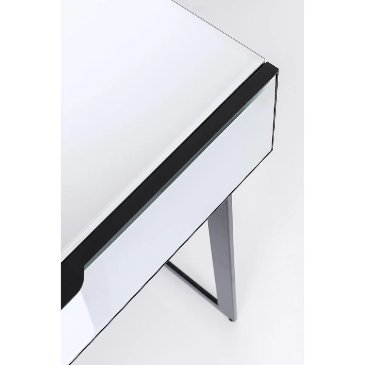 The desk is the centerpiece of any study or home office and should be not only functional, but also stylish. The Soran desk convinces with its modern, puristic design and offers a lot of storage space with its spacious drawers. The special feature of this desk is the complete cladding with mirror glass and the black accents, which emphasize the clear, pure design. Mirrored furniture is not only an unusual eye-catcher in the room, but can also visually enlarge the space and provide more light. The desk has a max. load capacity of 45 kg and is delivered partially disassembled, which allows for easy assembly.