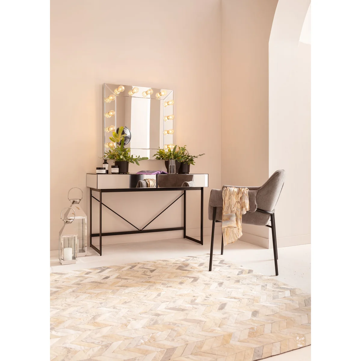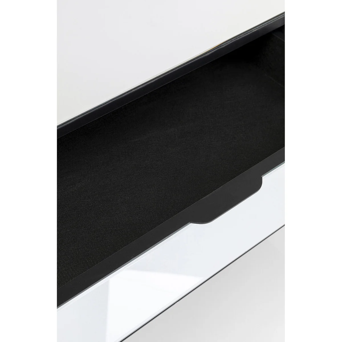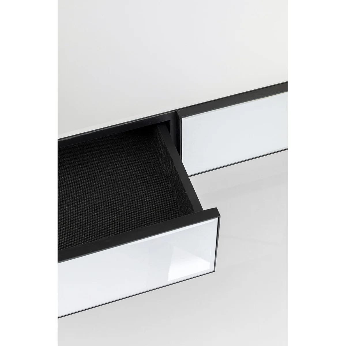 The desk is the centerpiece of any study or home office and should be not only functional, but also stylish. The Soran desk convinces with its modern, puristic design and offers a lot of storage space with its spacious drawers. The special feature of this desk is the complete cladding with mirror glass and the black accents, which emphasize the clear, pure design. Mirrored furniture is not only an unusual eye-catcher in the room, but can also visually enlarge the space and provide more light. The desk has a max. load capacity of 45 kg and is delivered partially disassembled, which allows for easy assembly.