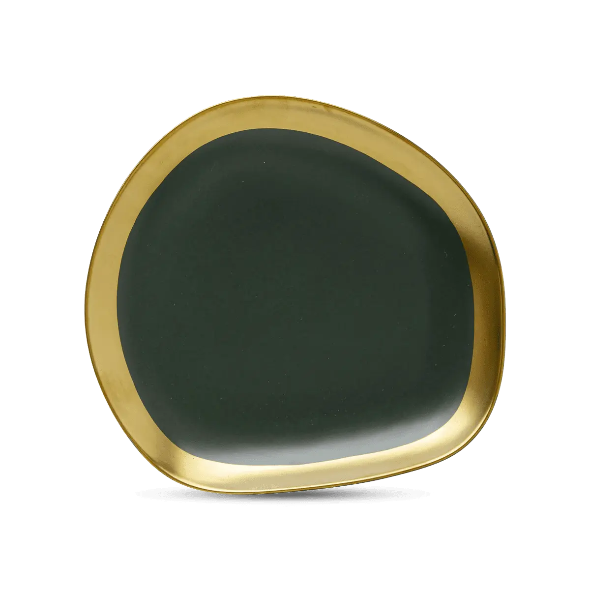 • Precious, handmade ceramic tableware series in a very dark green with a matt gold edge