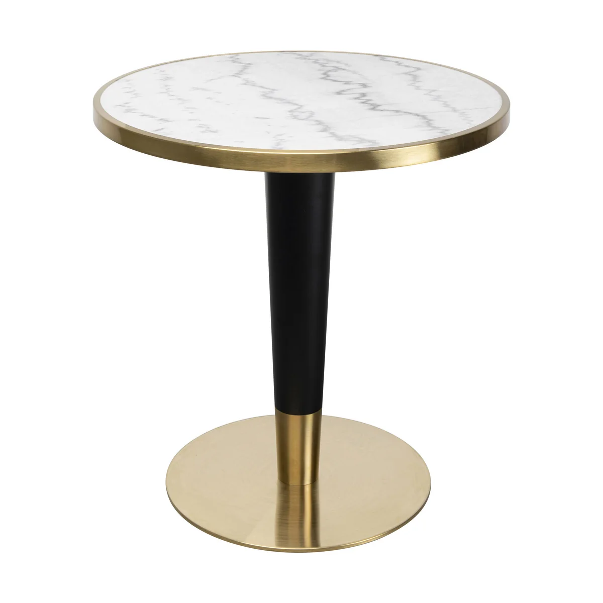 Crafted from genuine marble and supported by a sturdy brass-plated steel frame, this compact bistro table is built for durability and elegance. Its solid steel base and edge deliver exceptional stability, while the center leg design helps keep smaller rooms uncluttered. The 70cm diameter is perfect for intimate dining, a stylish corner accent, or a chic hallway table.