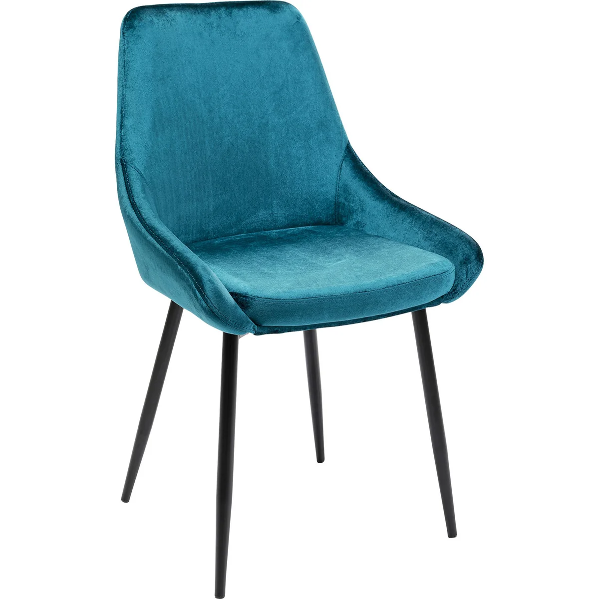 Introducing the East Side Dining Chair in a vibrant turquoise hue, upholstered in polyester with a luxurious velvet look.