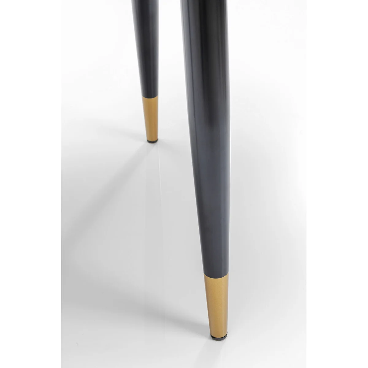 ● An eye-catcher with grandeur: an upholstered chair with black lacquered legs and covers in a mixed pattern