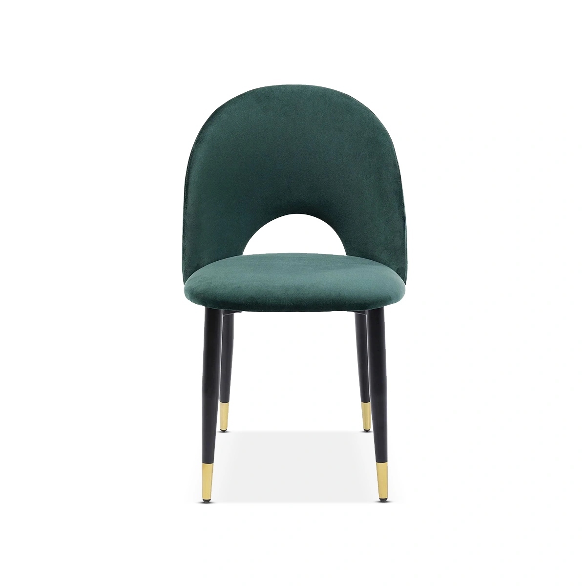 Experience the sophisticated allure of the Iris Dining Chair in luxurious velvet green. With its inviting appeal and contemporary design, it's an excellent addition to your dining area.