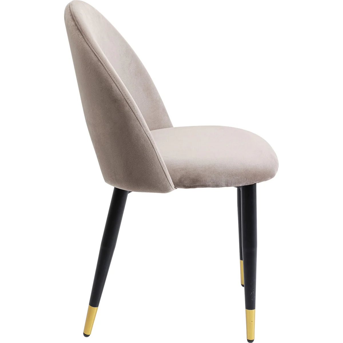 The chairs feature a plush velvet finish in a neutral taupe shade that complements any decor. With dimensions of L 49 cm | W 54 cm | H 84 cm, they are perfectly sized for a comfortable dining experience. The cover is made of high-quality polyester, mimicking the elegant look of velvet.