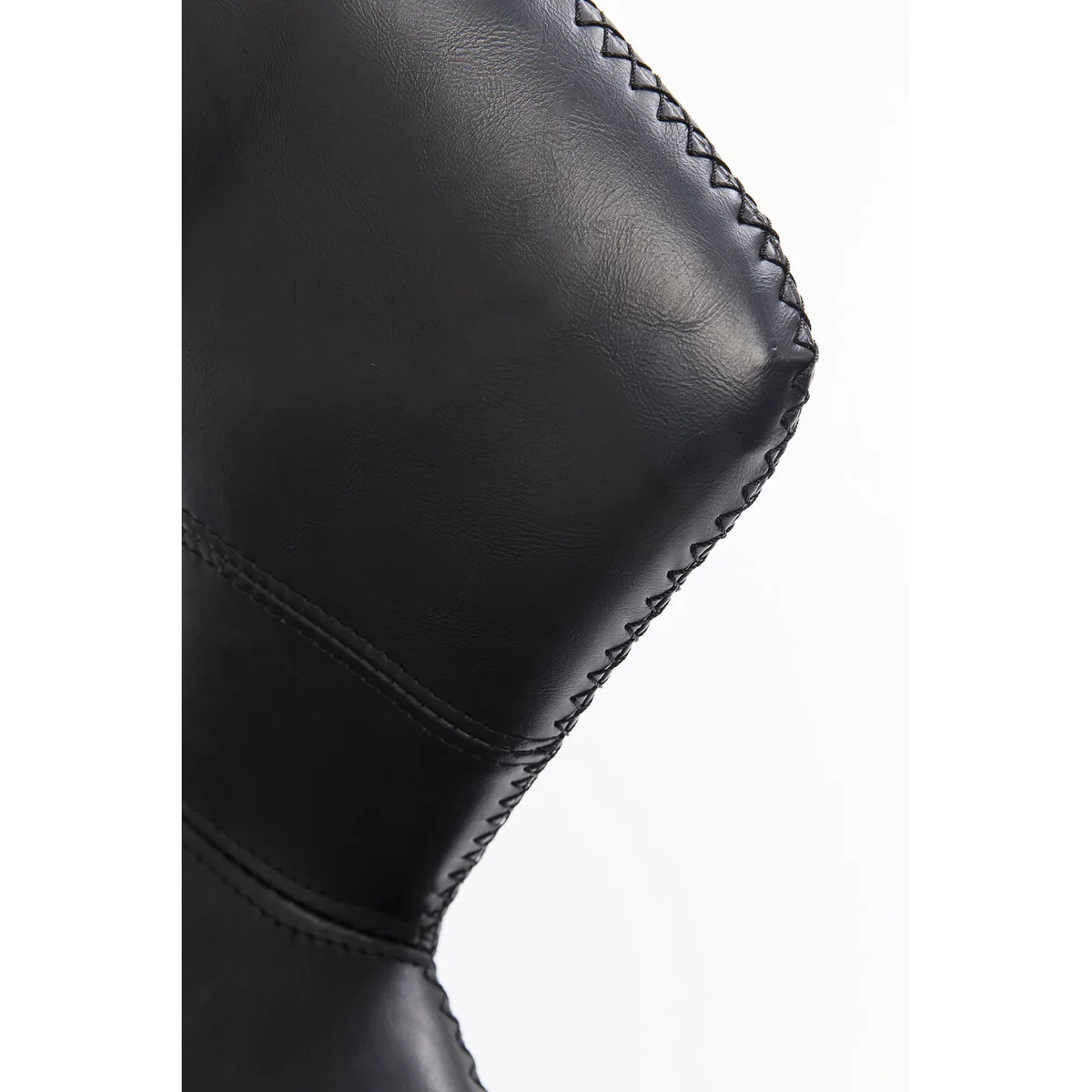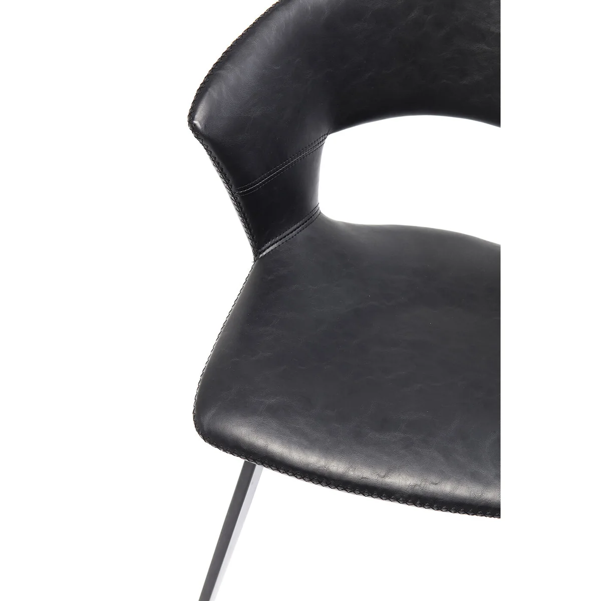 • Comfortably upholstered chair in a lively retro design - all in black • A special eye-catcher: the recess in the backrest and the attractive all-round cross-stitch seam • No corners or edges and therefore particularly comfortable, whether at the dining table or the desk in the home office • The coated cover looks like leather, but is much less complicated and particularly easy to care for • Also available as a bar stool