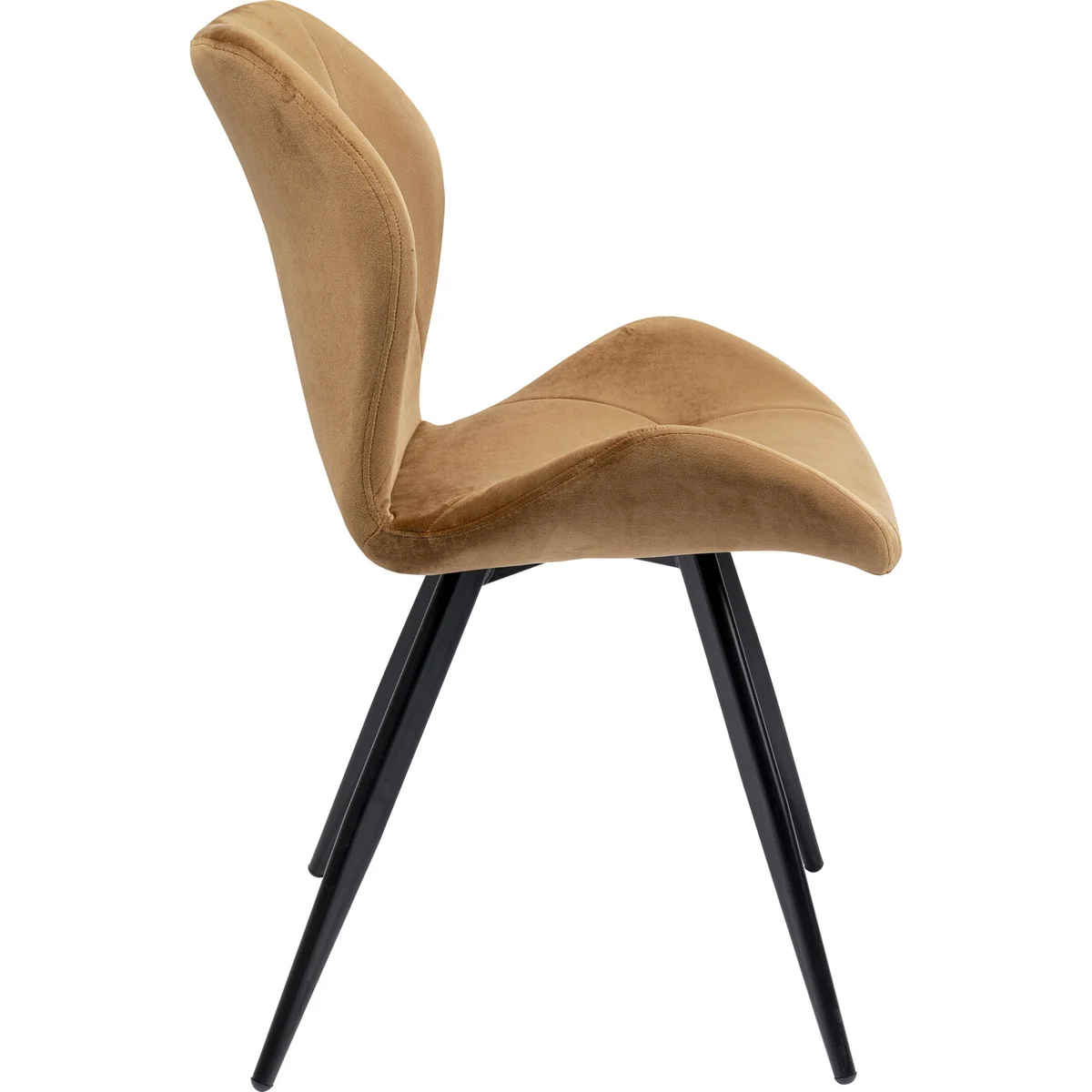 ● A brown dining chair with black metal legs ● Refined design with a velvet-look cover ● This padded chair fits neatly into the dining room or home office, and also looks good at a small dressing table in the bedroom ● Superbly comfortable and with discreet chic: it's like sitting in a three-star restaurant! ● Maximum seating comfort thanks to shell shape and seat height of 46.50cm