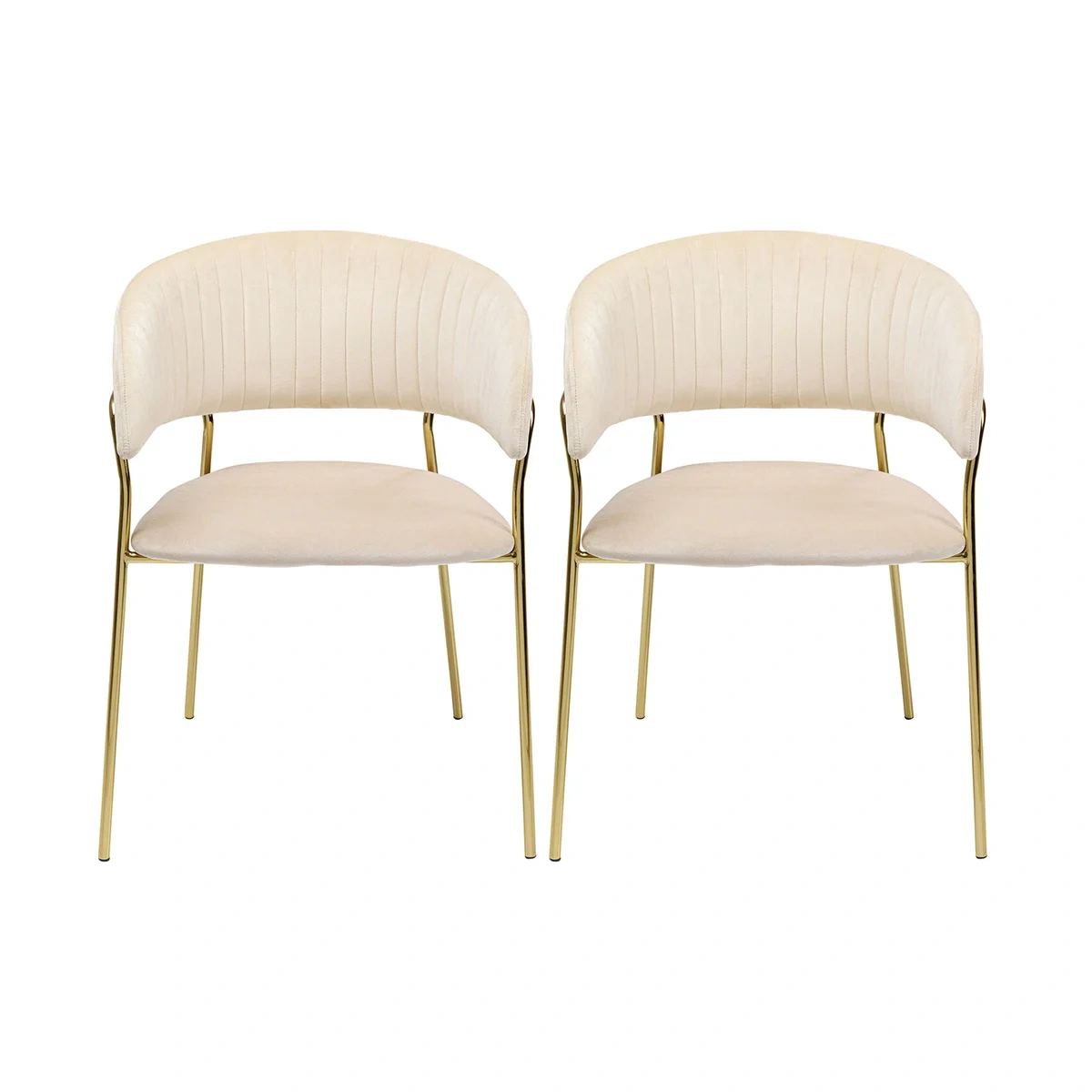 • Set of two upholstered chairs with a continuous arm and backrest featuring a glamorous retro look ,A pair of chairs for a small round dining table for dinner for two, and a great starter set for the first apartment