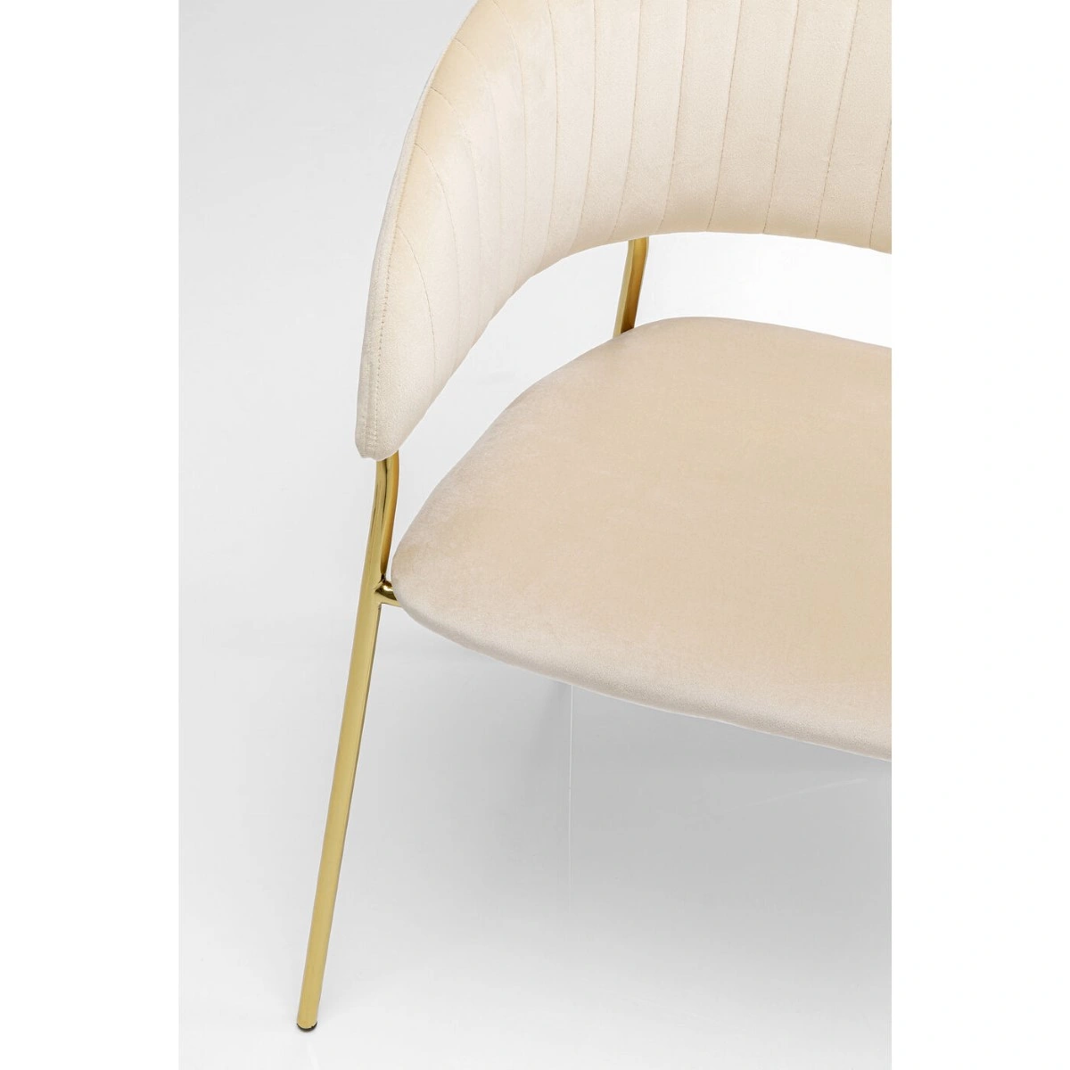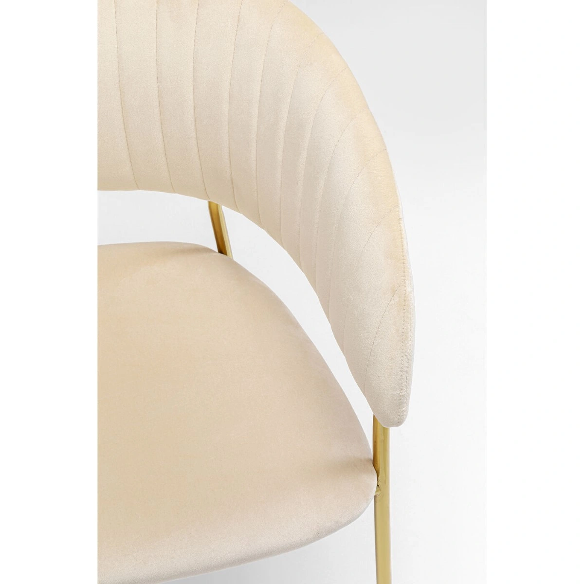 • The mix of the gold-coloured frame and the upholstery fabric in velvety cream
