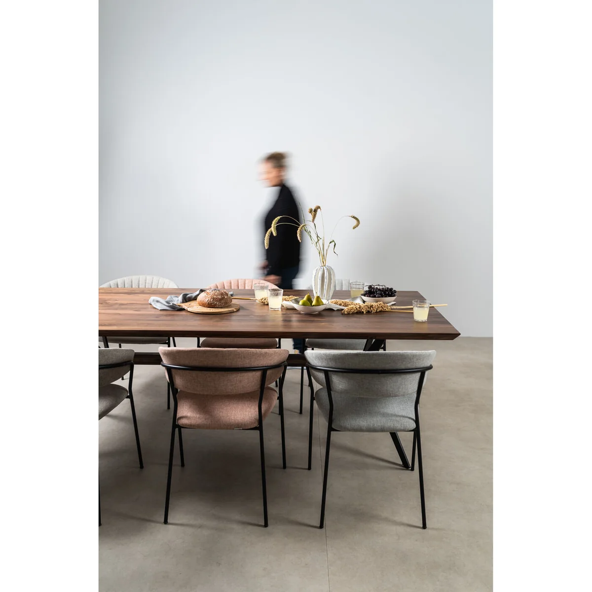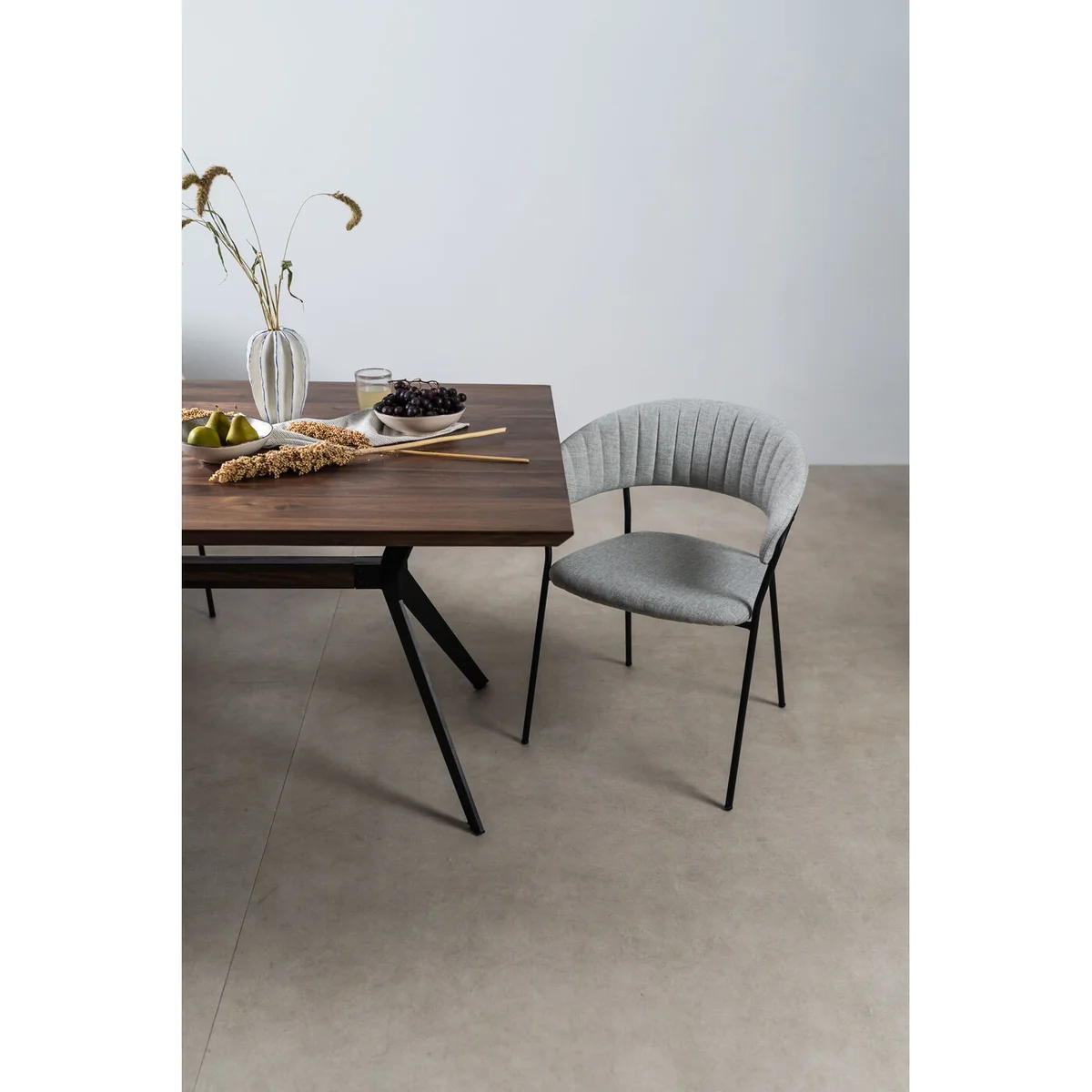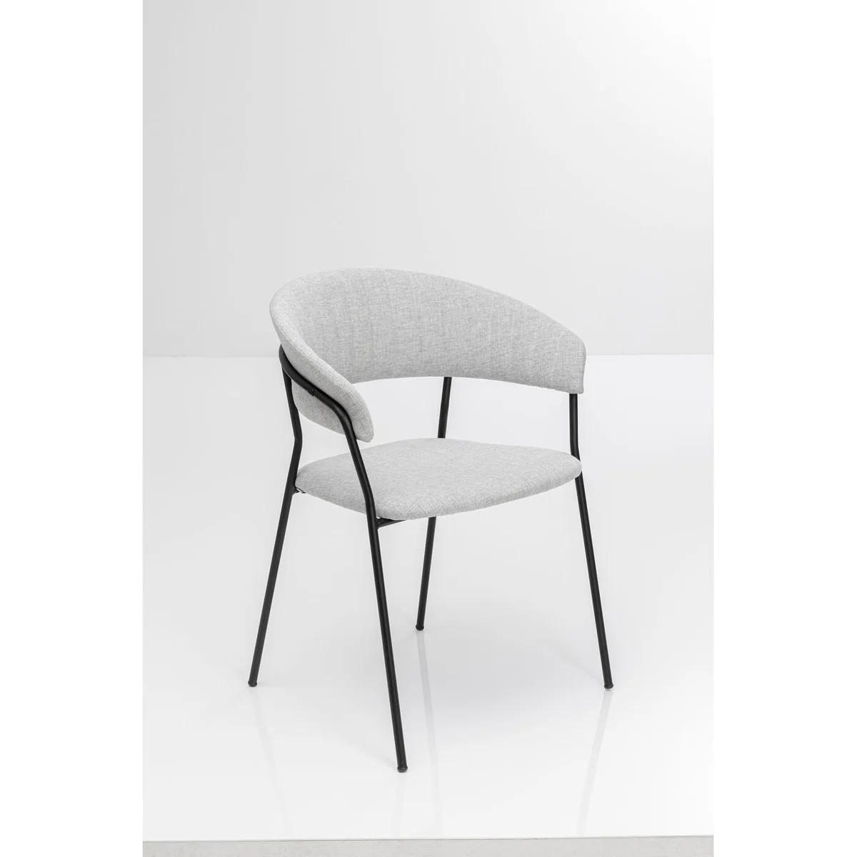 The Belle Dining Chair with Armrest in light grey combines modern design with comfort. Its sleek lines and soft upholstery offer a minimalist yet luxurious feel, creating an inviting atmosphere in any dining room.