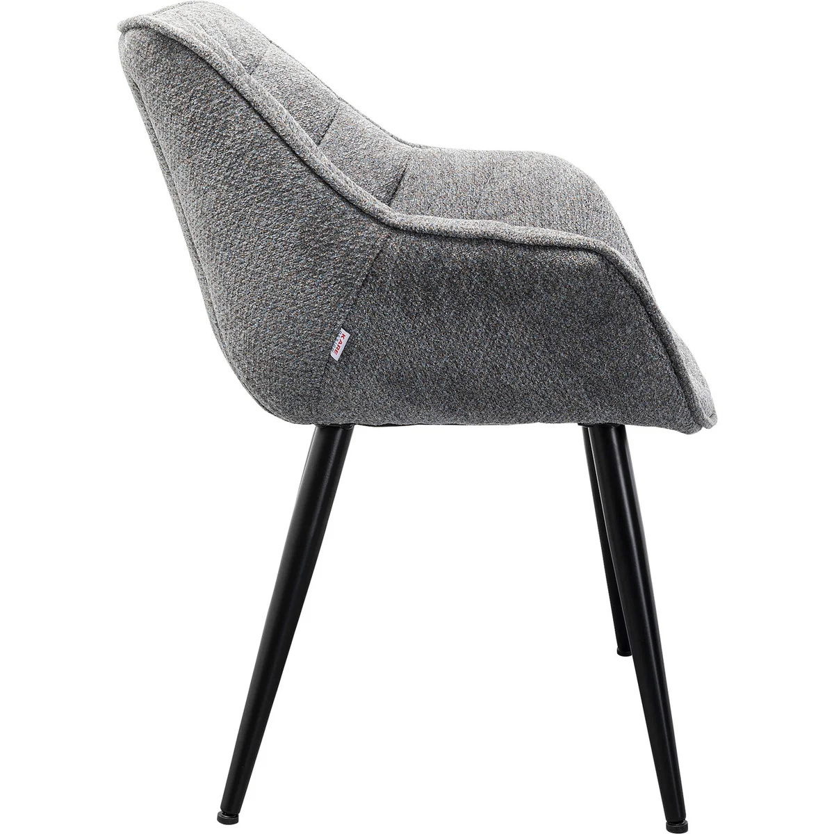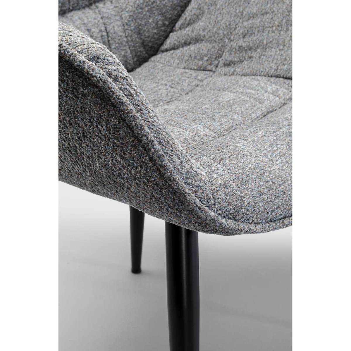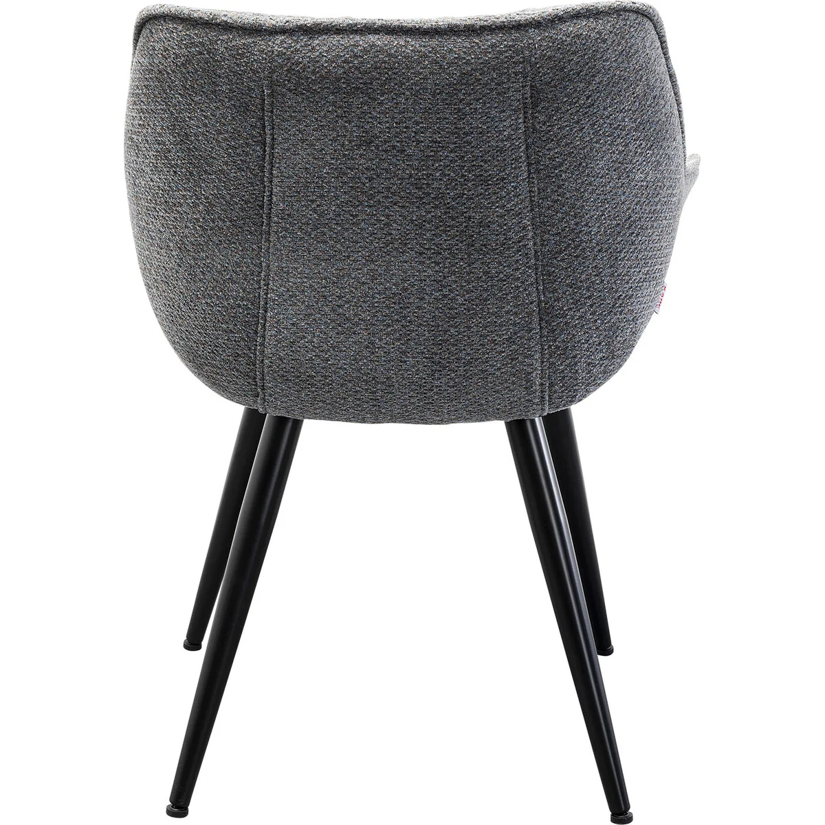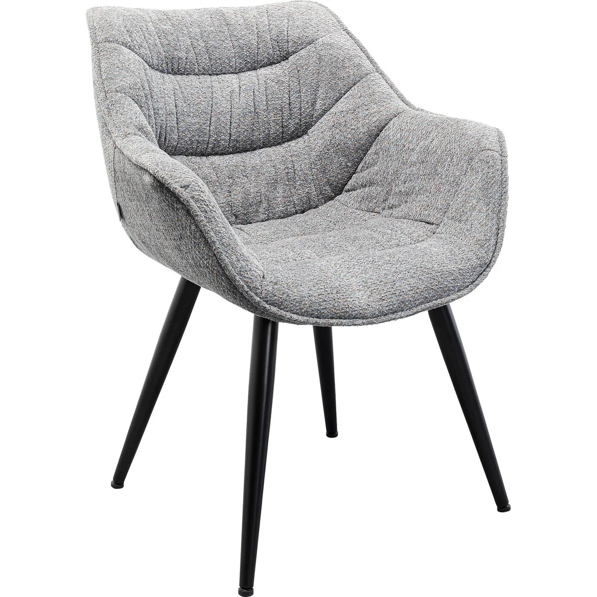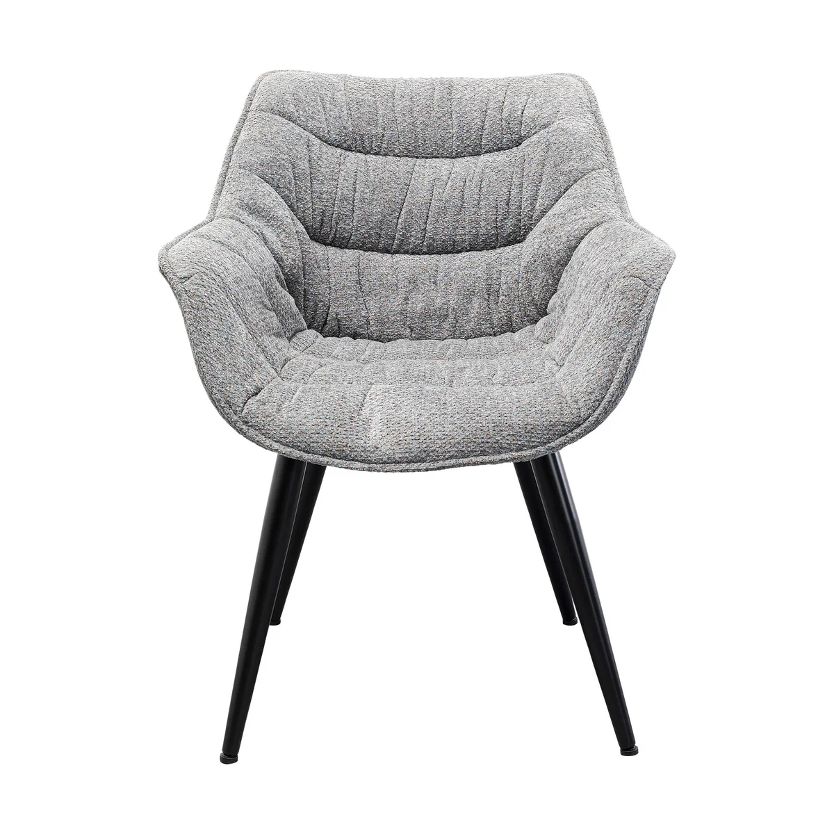 Enhance dining areas with the Thelma dining chair in melange grey. Soft fabric upholstery with a supportive backrest and comfortable armrests suits everyday meals and long conversations. Black legs provide a modern touch that fits seamlessly into various interiors. Pairs with other pieces from the Thelma collection for a cohesive dining setting.