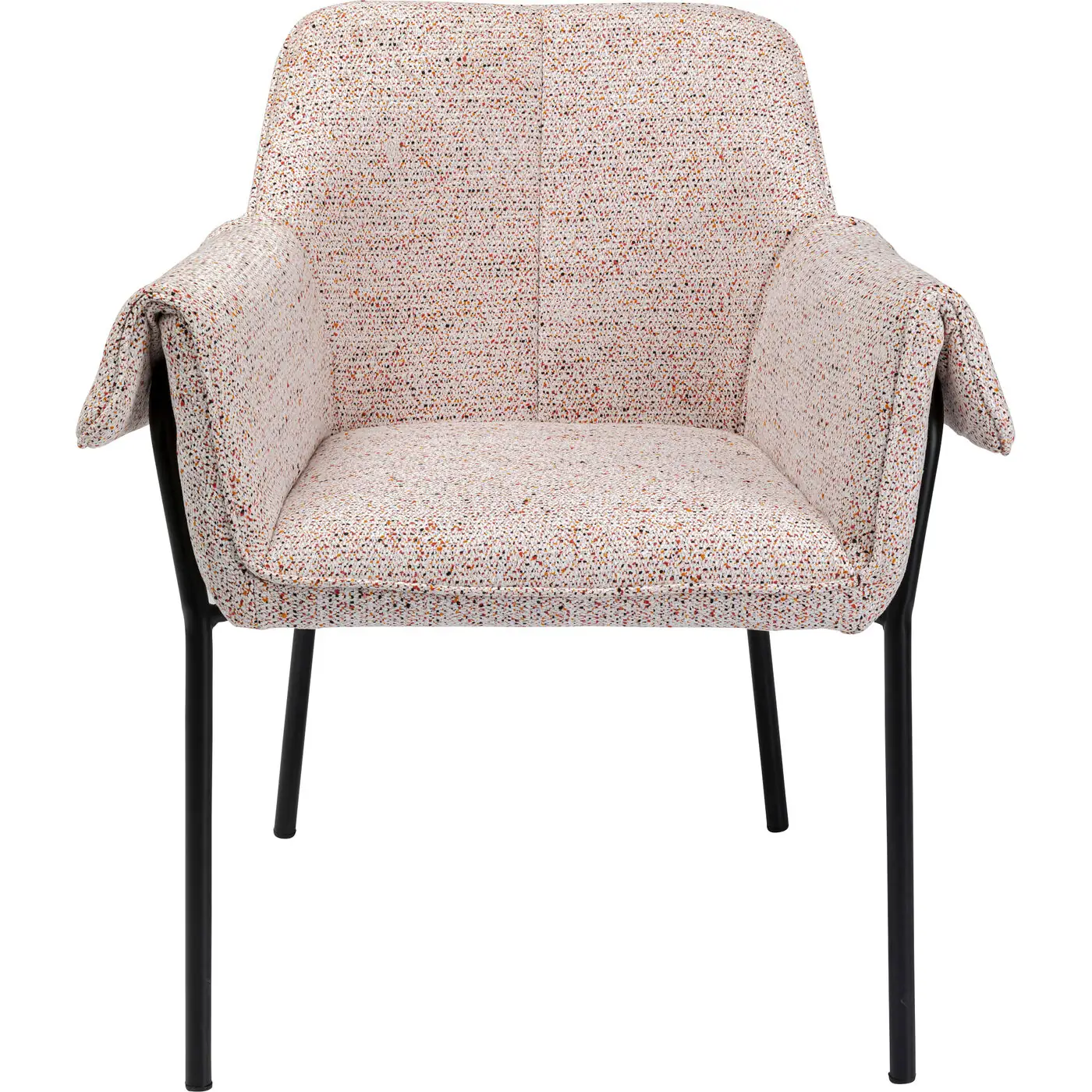 Introducing the Bess Dining Chair, upholstered in soft beige flittr fabric. With its elegant armrests and clean silhouette, this chair provides both comfort and a refined look, perfect for any modern dining setting.