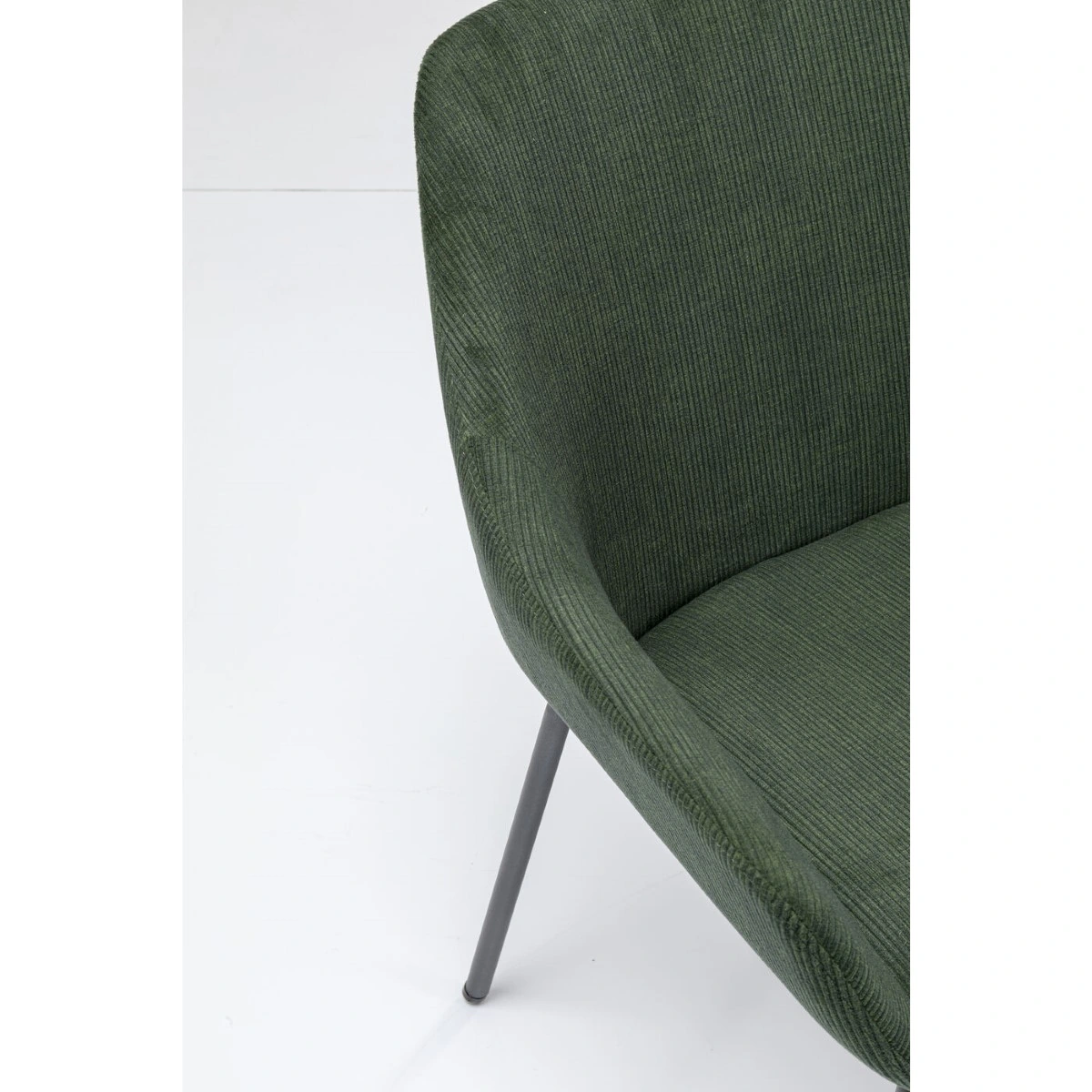 • An upholstered chair and modern classic in the trendy furnishing colour of green with a cover in a velvet cord look
