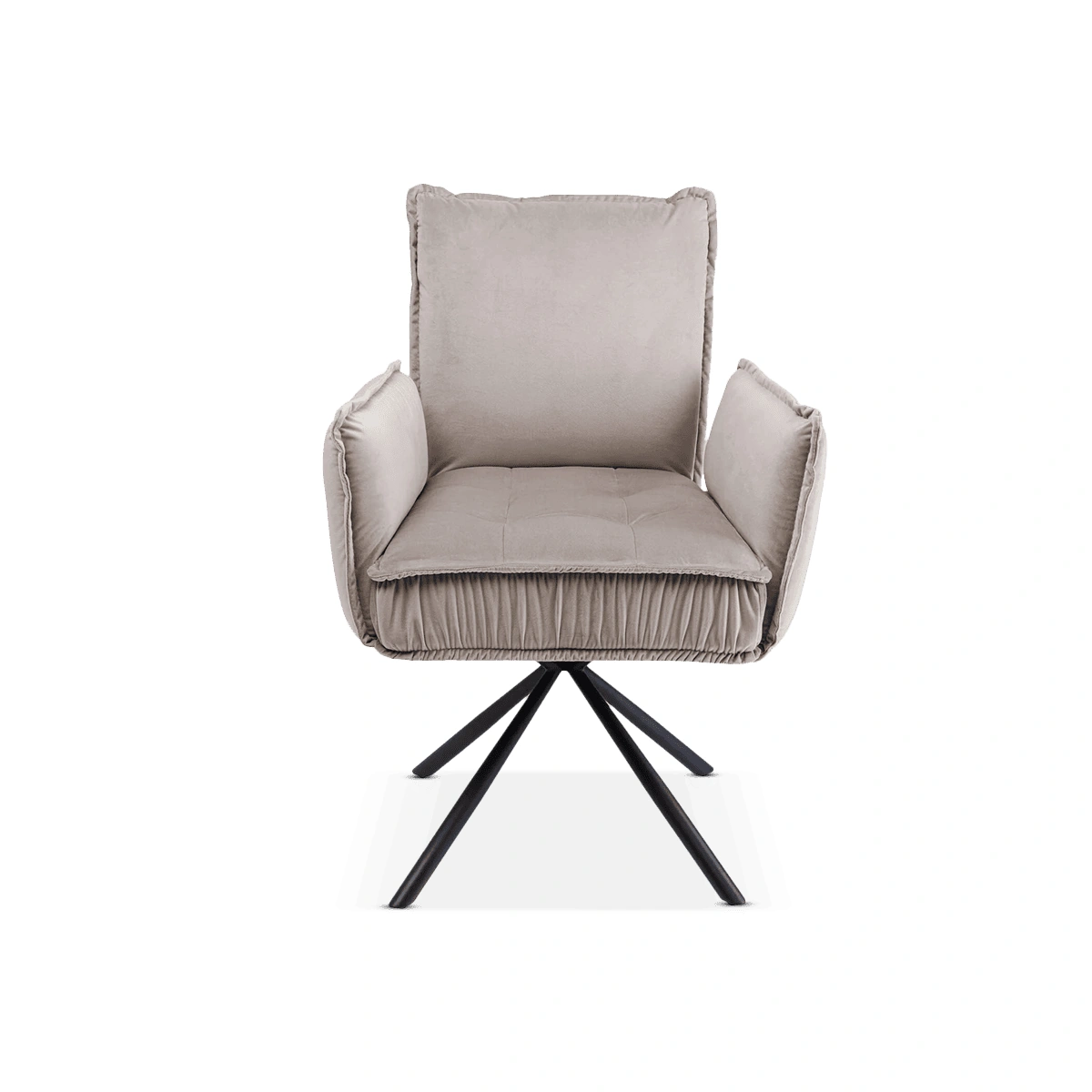 A designer chair that catches everyone's eye. This is due to its design idea: the seat is modelled on a floor cushion with button stitching, the back cushion is made in the shape of a sofa cushion with piped seams. Together, they make a comfortable dining chair whose swivel function makes it easy to sit down and get up. This original chair is not only suitable for the dining room. As an upholstered chair, it is also a good choice for long sessions at the desk or meeting table. Seat height 49cm and loadable up to 120 kg.