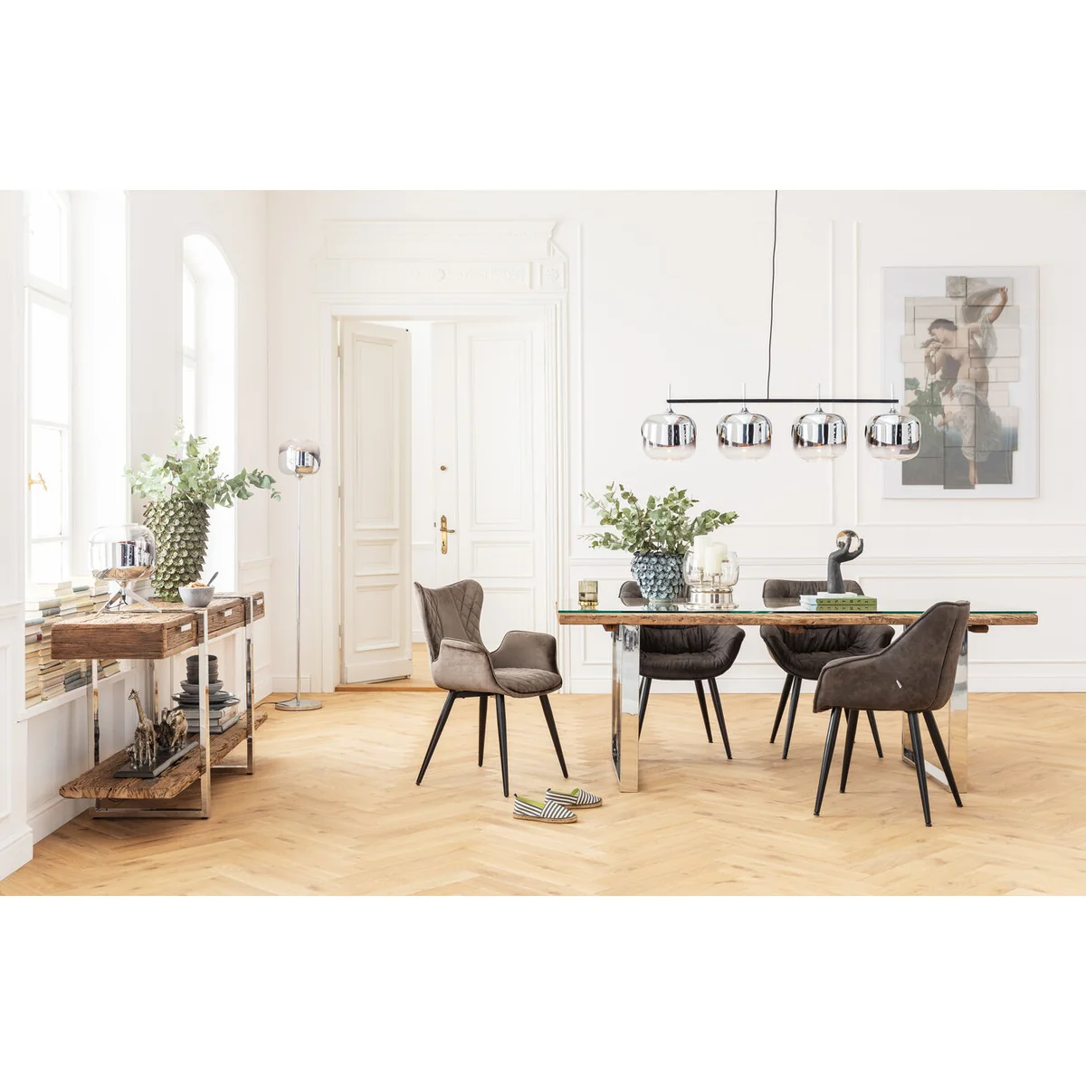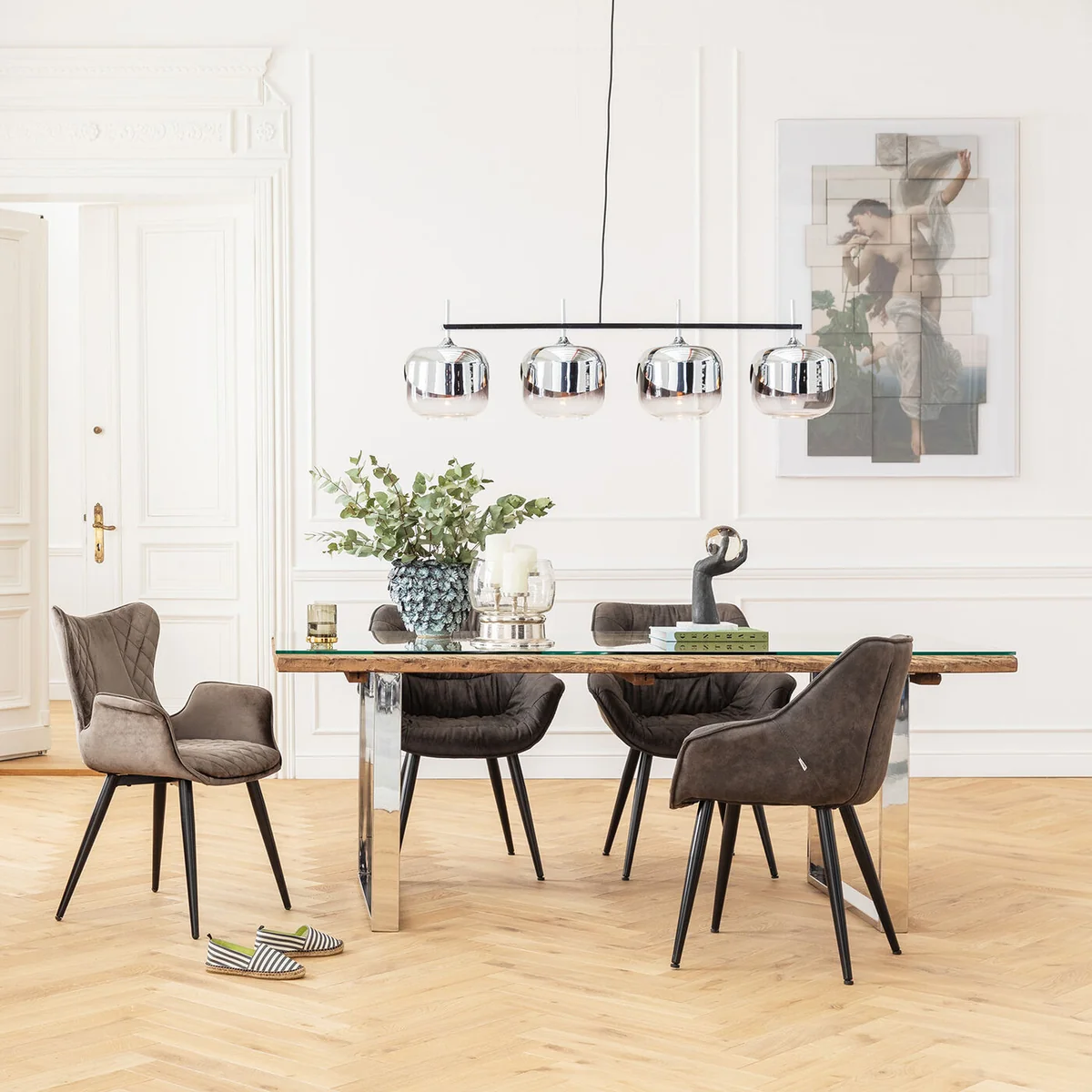 This chair has copied a lot from the armchair - the wide curved backrest, the upholstery, the velvet cover - after all, it's supposed to be really comfortable. The diamond quilting also looks wonderfully luxurious. An armchair like a personal invitation!